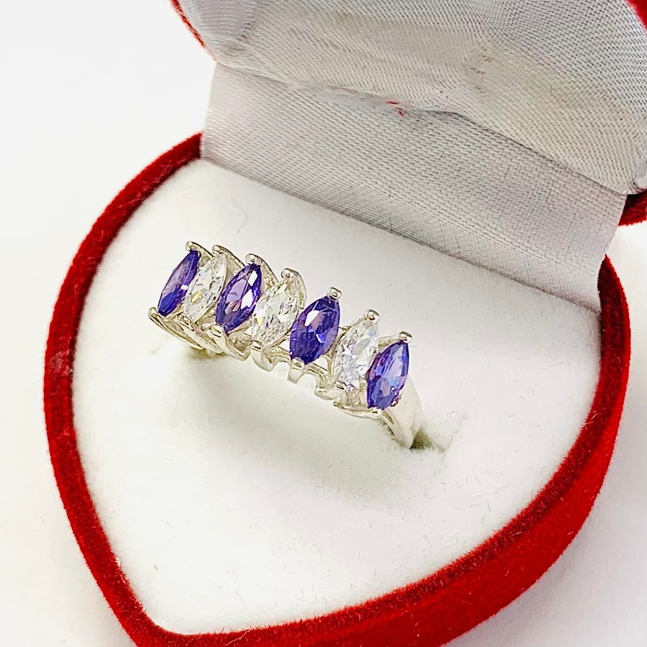Anillo Medio Sin Fin con Marquesitas Violetas y Blancas de Plata 925