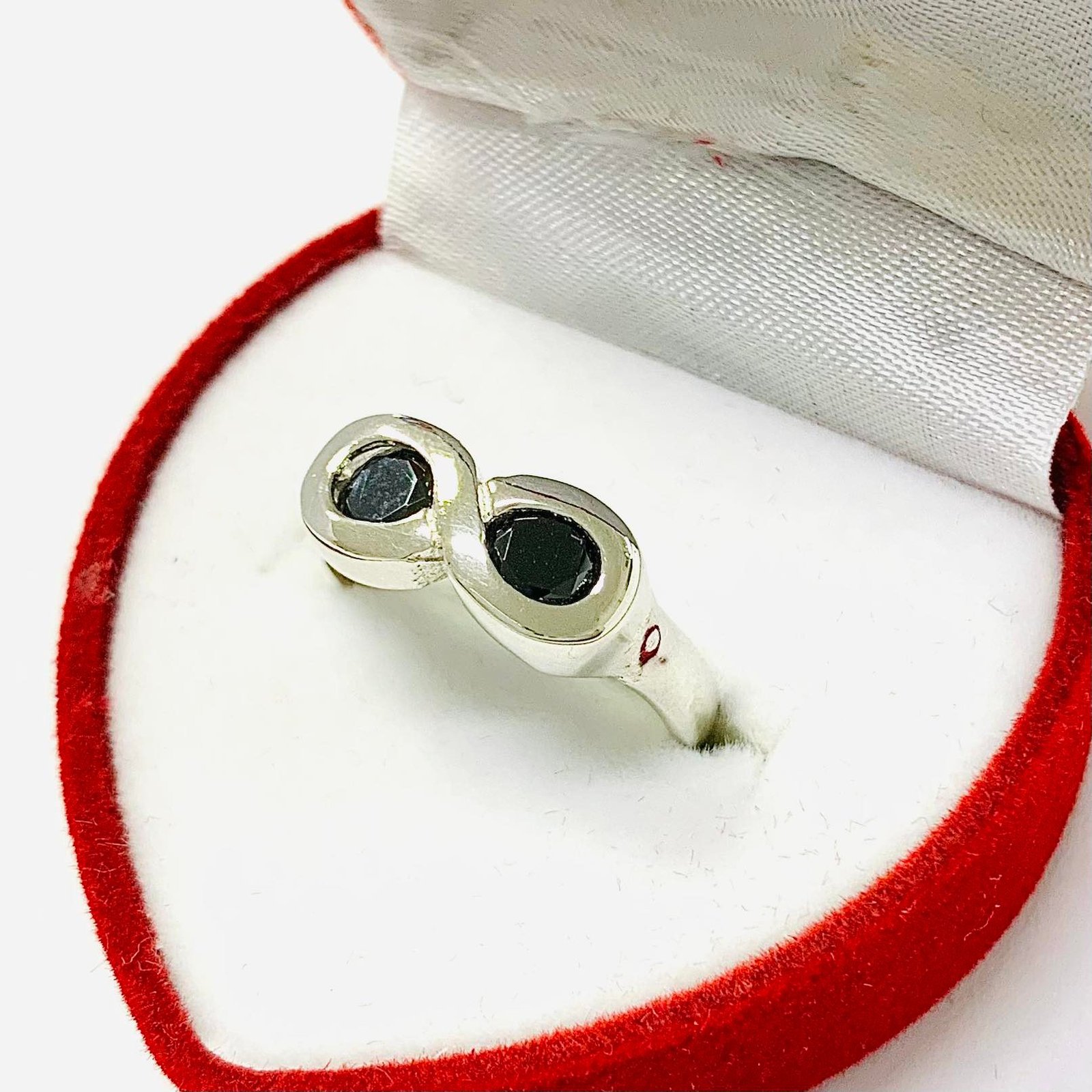 Anillo Infinito con Piedras Negras de Plata 925