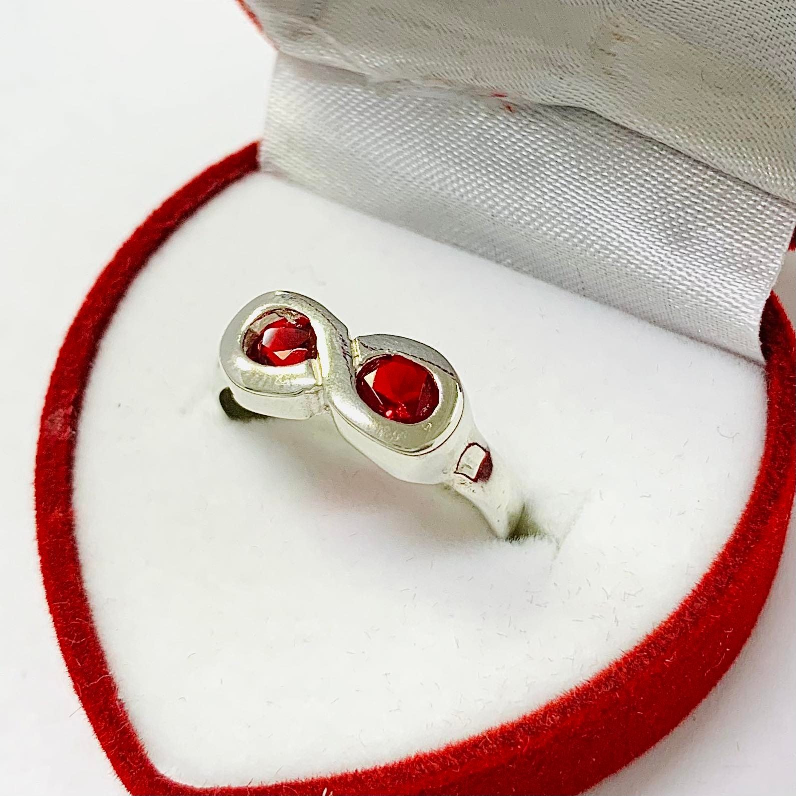 Anillo Infinito con Piedras Rojas de Plata 925