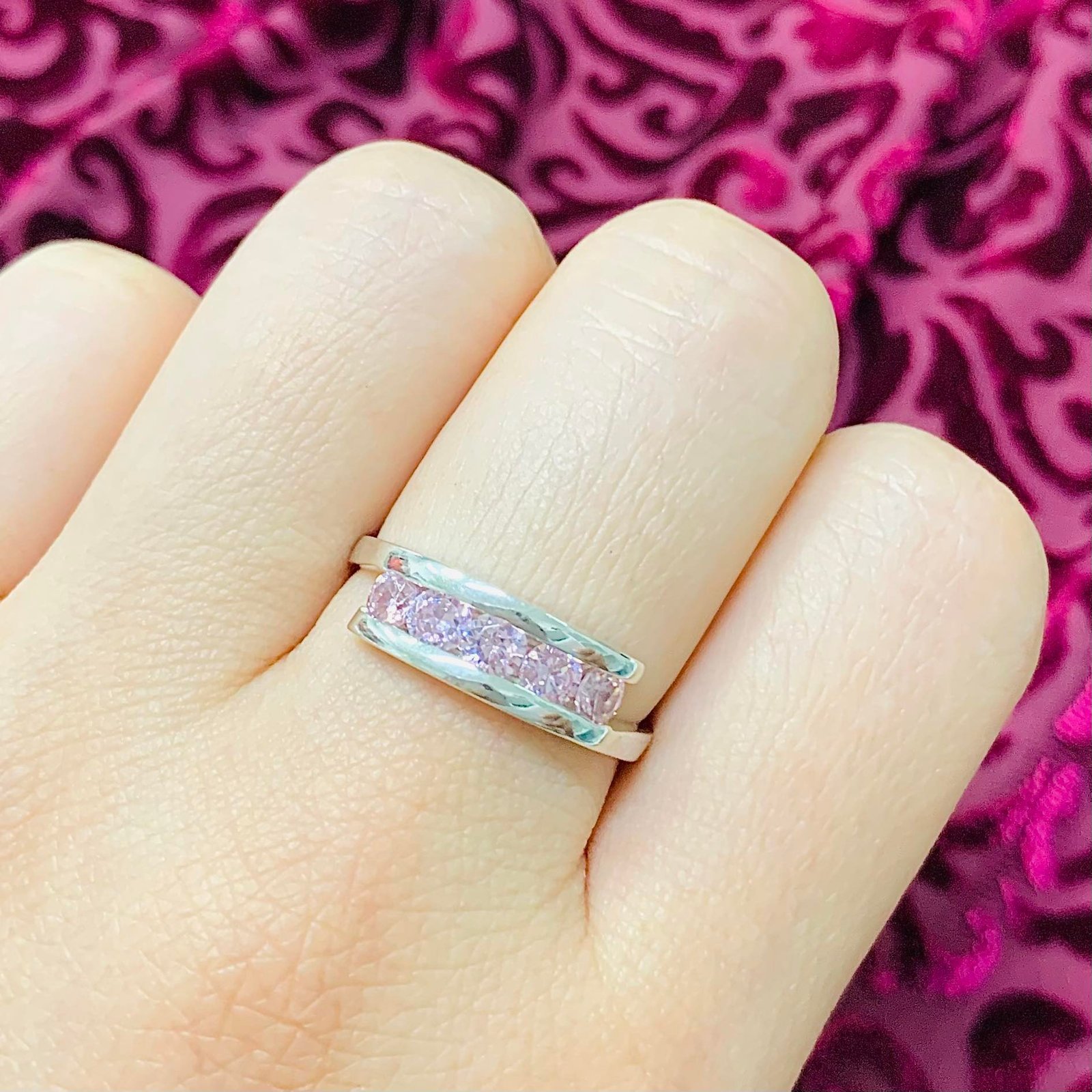 Anillo Medio Sin Fin Cruzado con Piedras Rosas de Plata 925