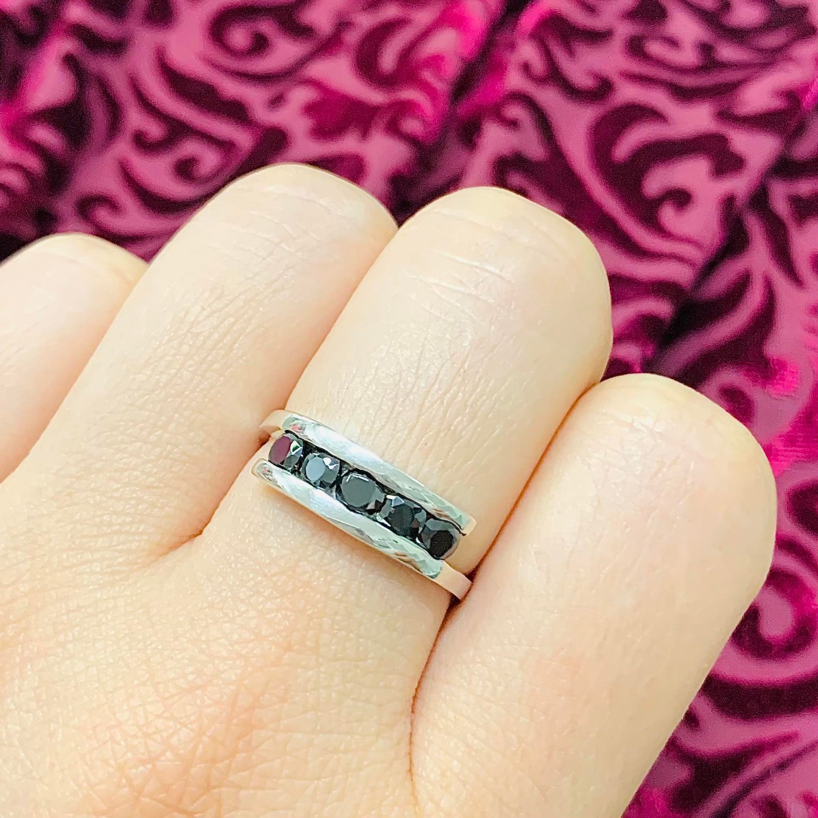 Anillo Medio Sin Fin Cruzado con Piedras Negras de Plata 925