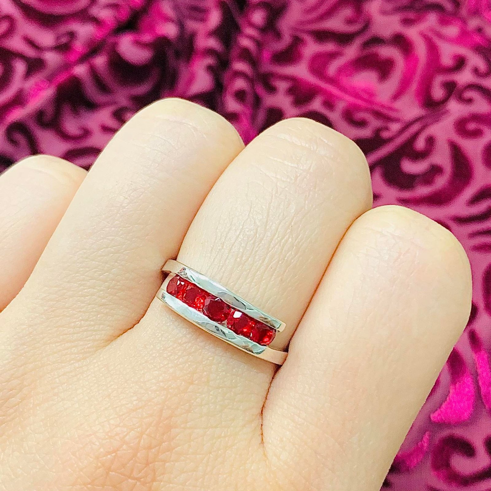 Anillo Medio Sin Fin Cruzado con Piedras Rojas de Plata 925