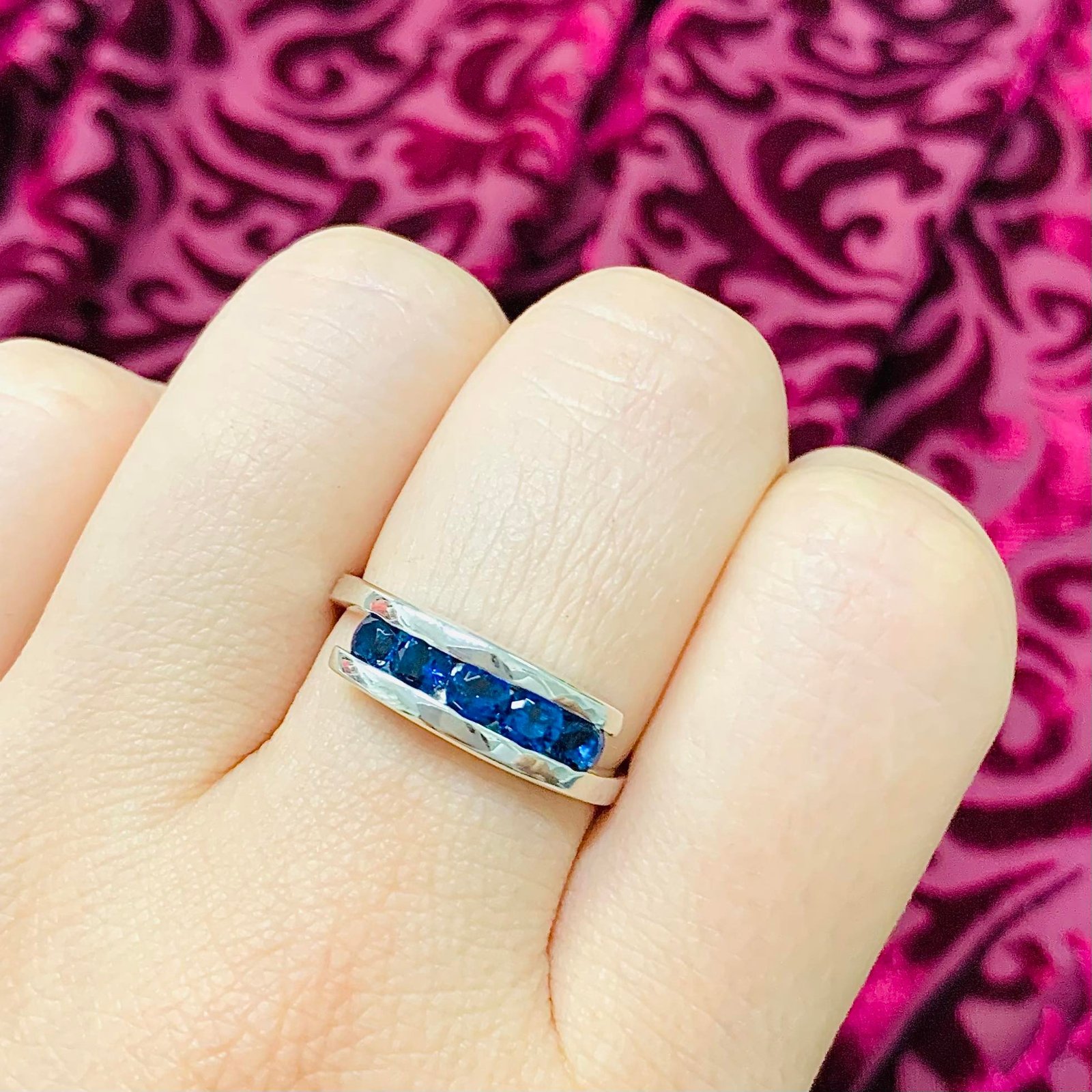 Anillo Medio Sin Fin Cruzado con Piedras Azules de Plata 925