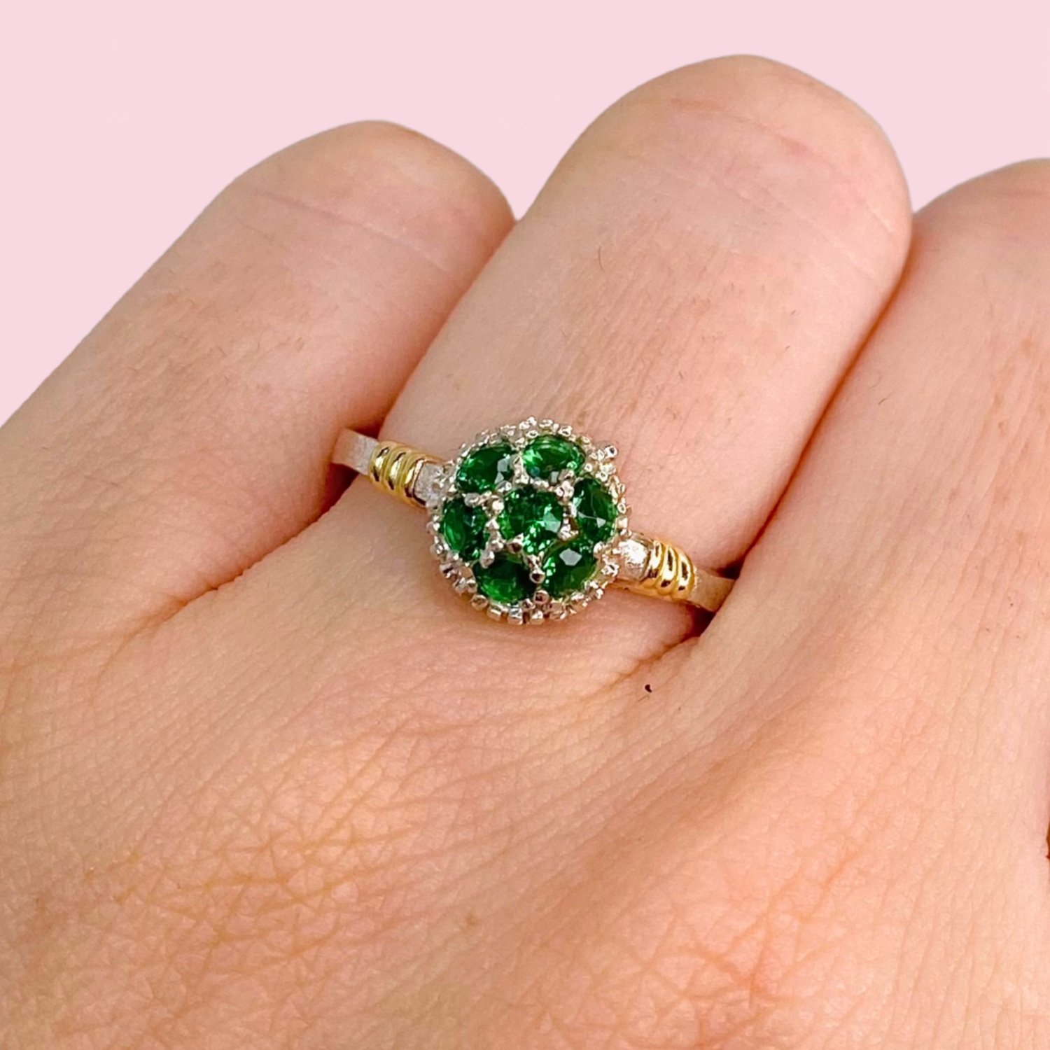 » anillo frutillita con cubic esmeralda Plata y Oro