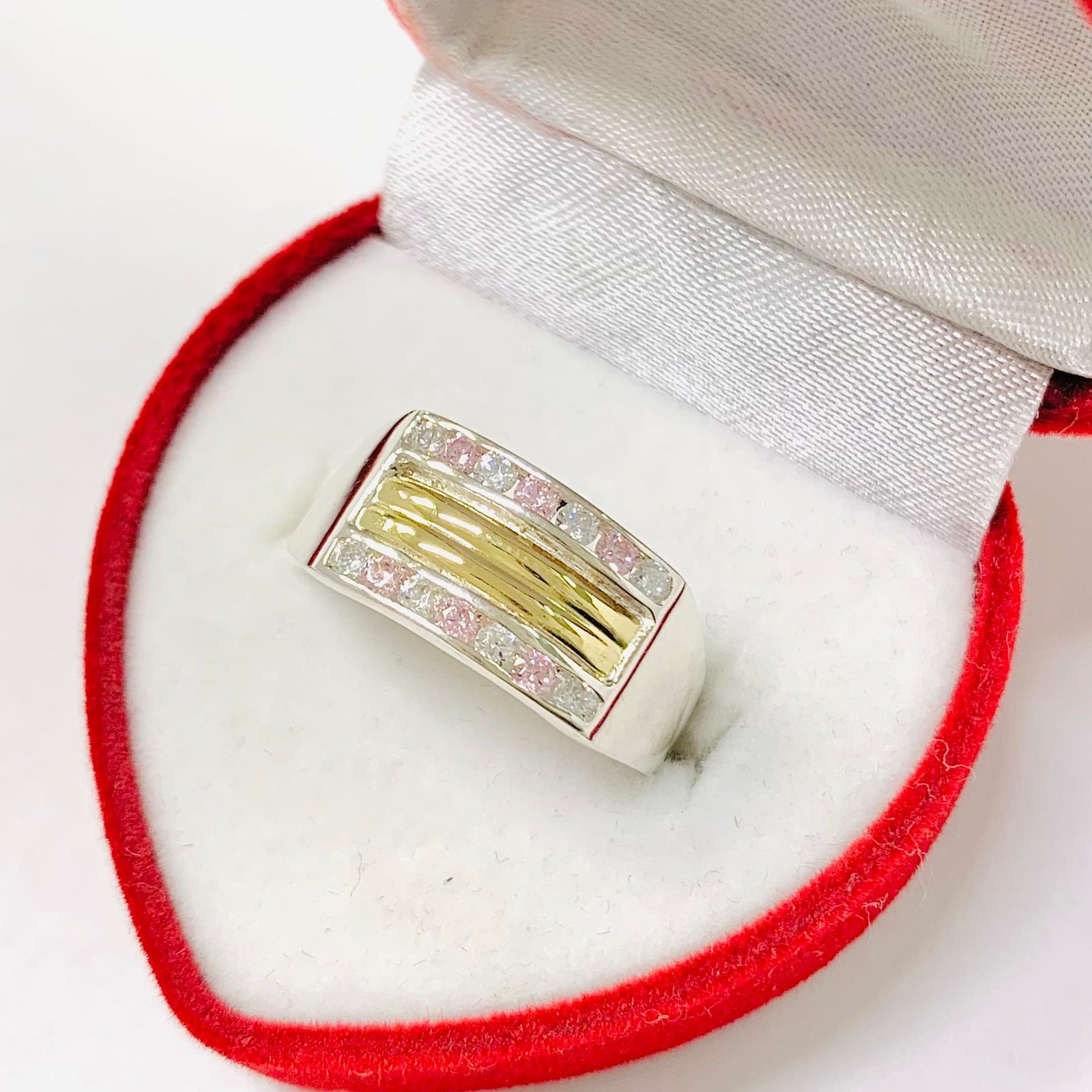 Anillo doble Medio Sin Fin rosa de Plata y oro