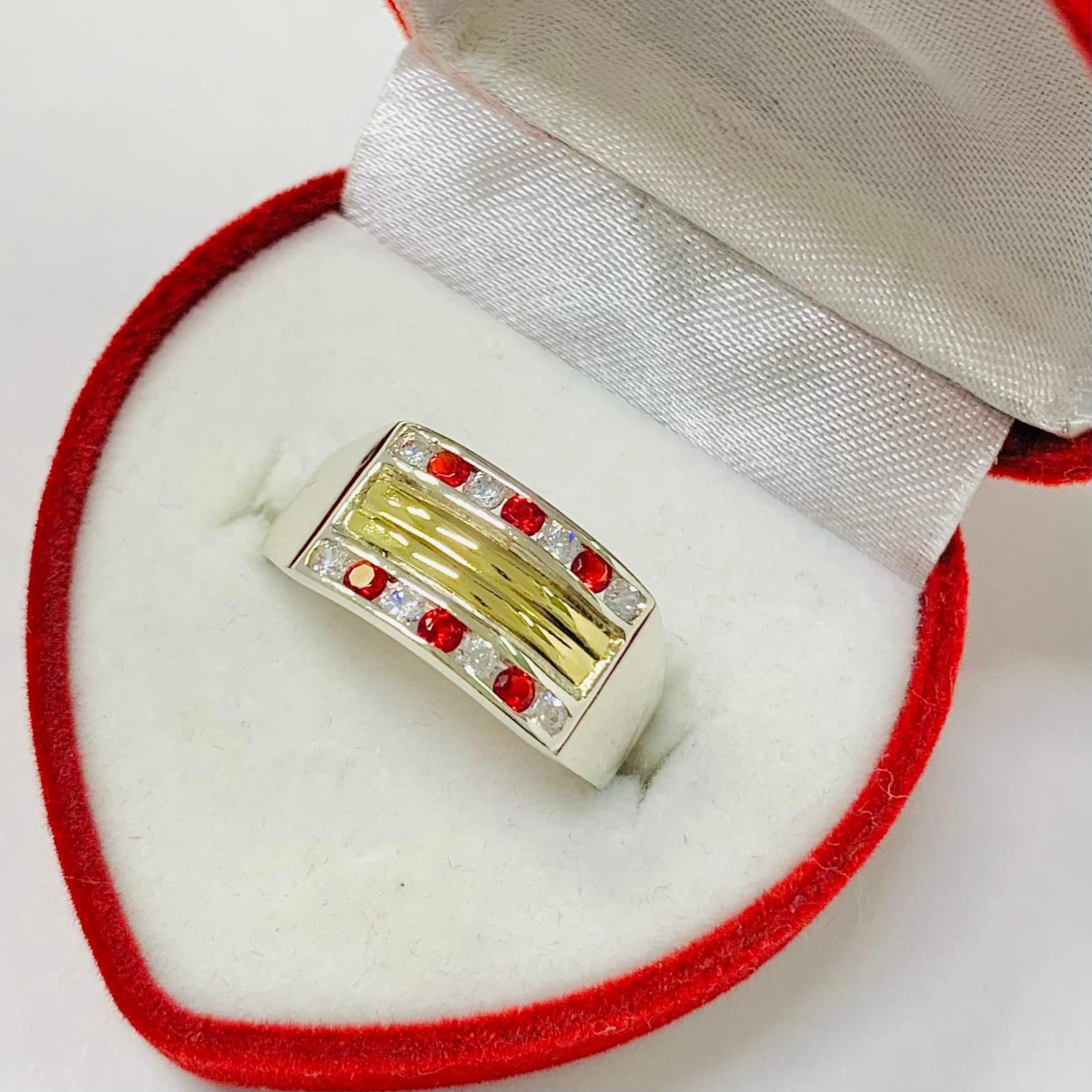 Anillo doble Medio Sin Fin rubi de Plata y oro