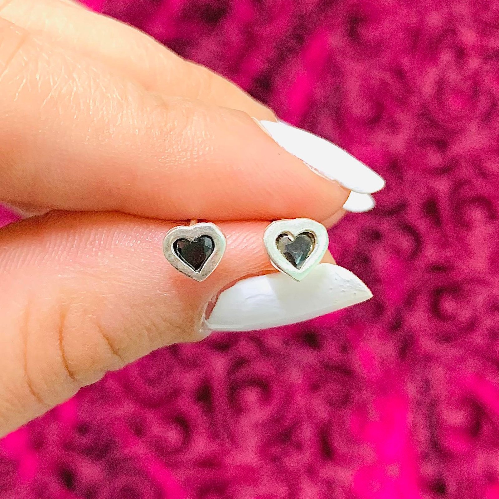 Aros corazoncito con piedra Negro de Plata 925