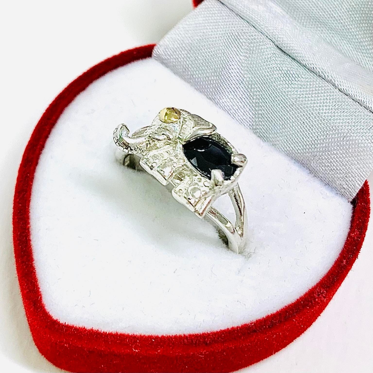 Anillo elefante bebe con cubic negro Plata y Oro