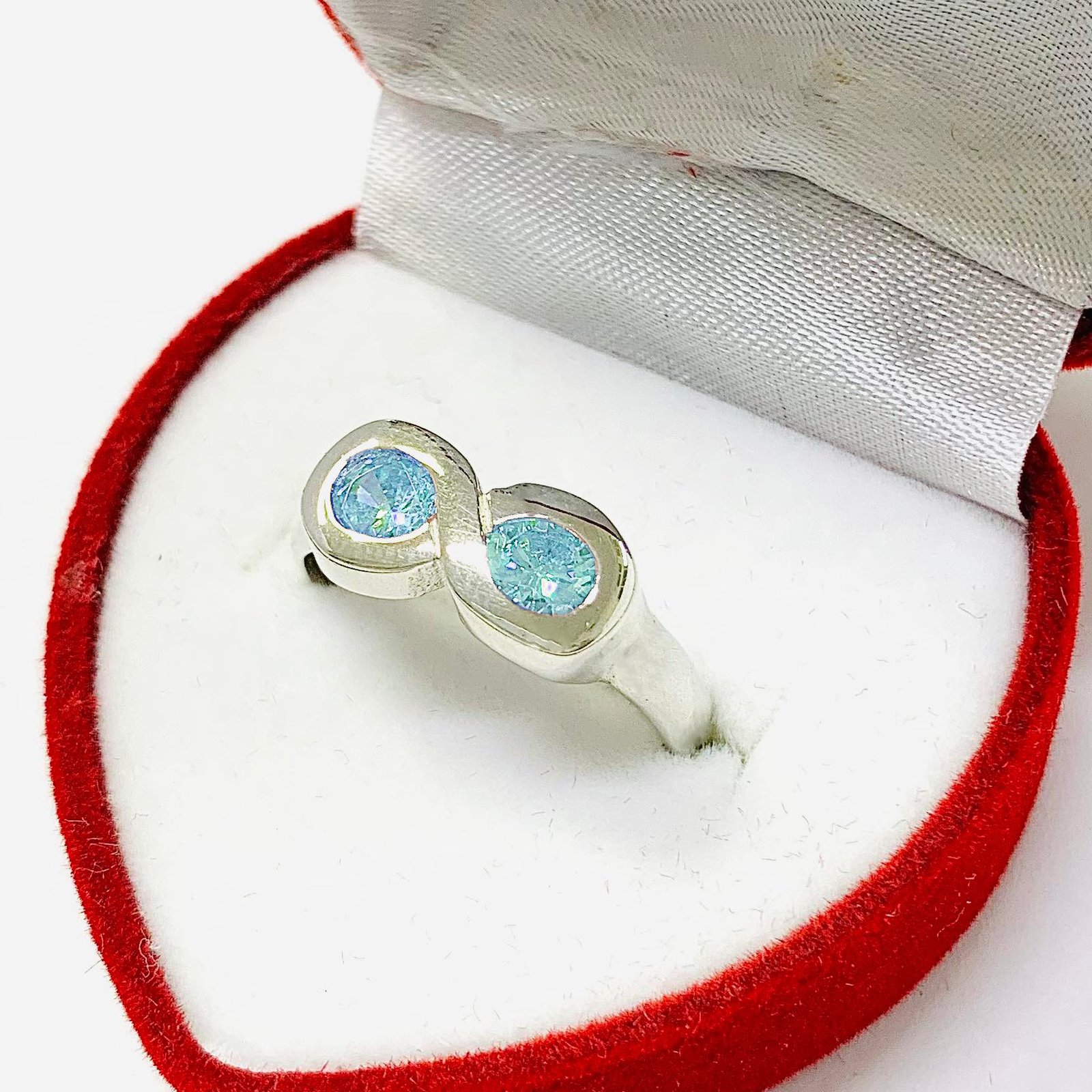 Anillo Infinito con Piedras aguamarinas de Plata 925