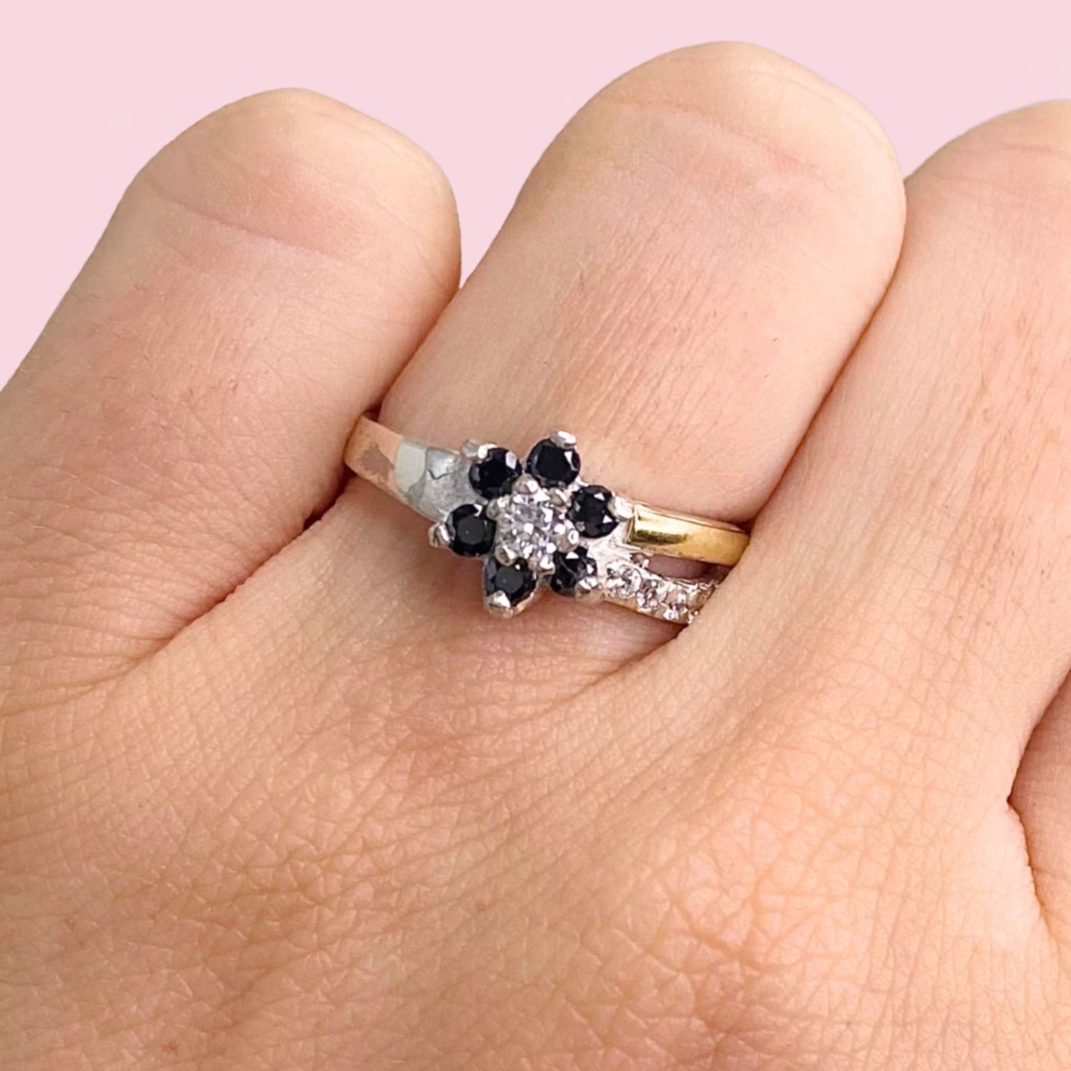 Anillo Roseta Linda Negro de Plata y Oro