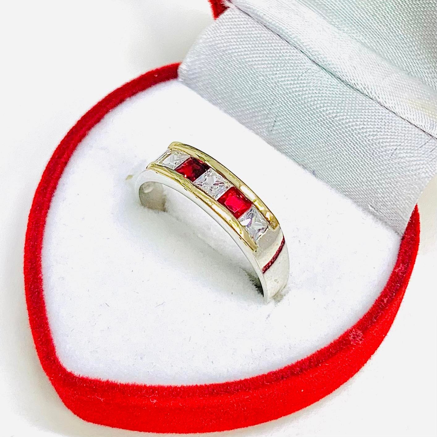 Anillo Medio sin fin con cubos rubi de Plata y Oro