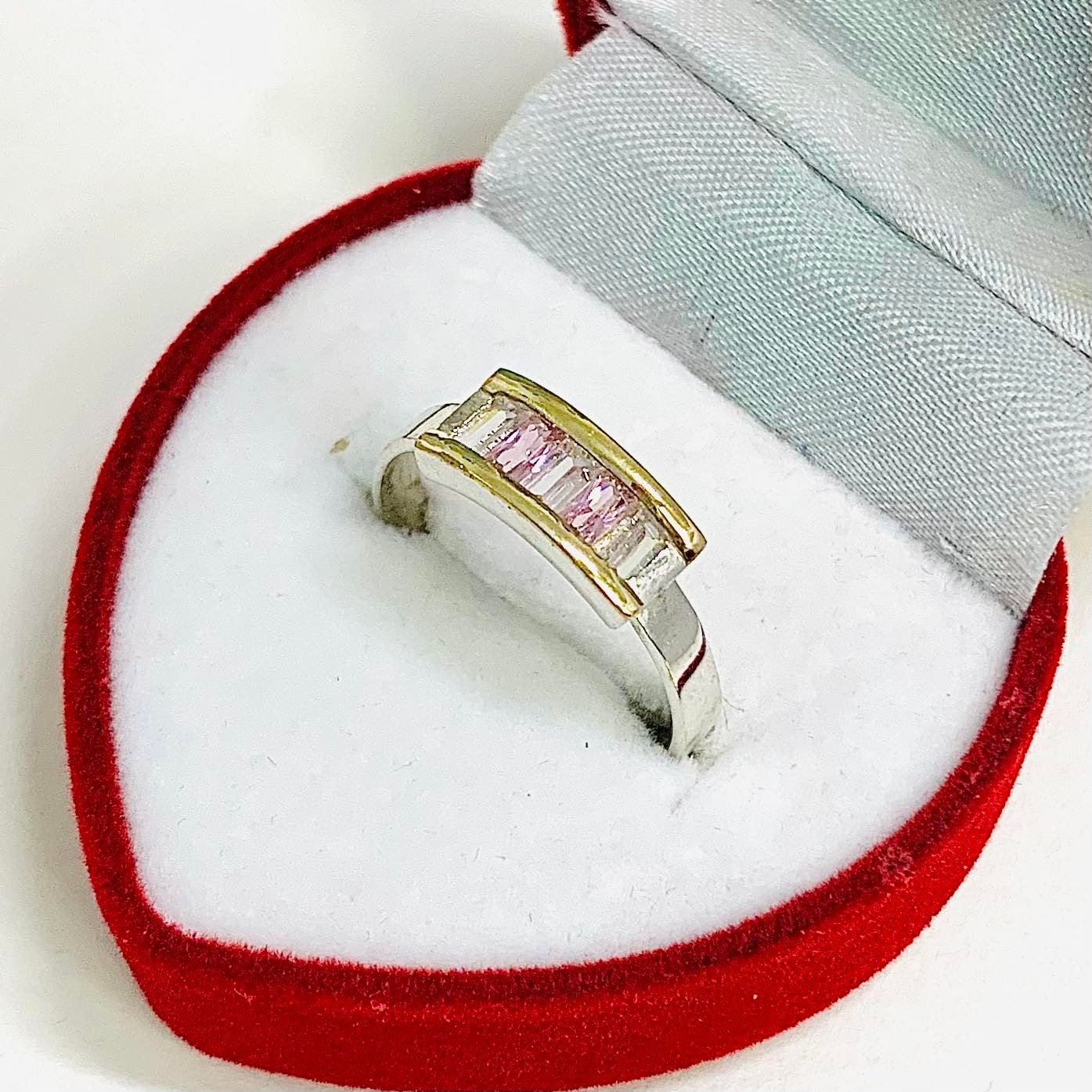 Anillo Smile Medio sin fin con Baguette rosa de Plata y Oro