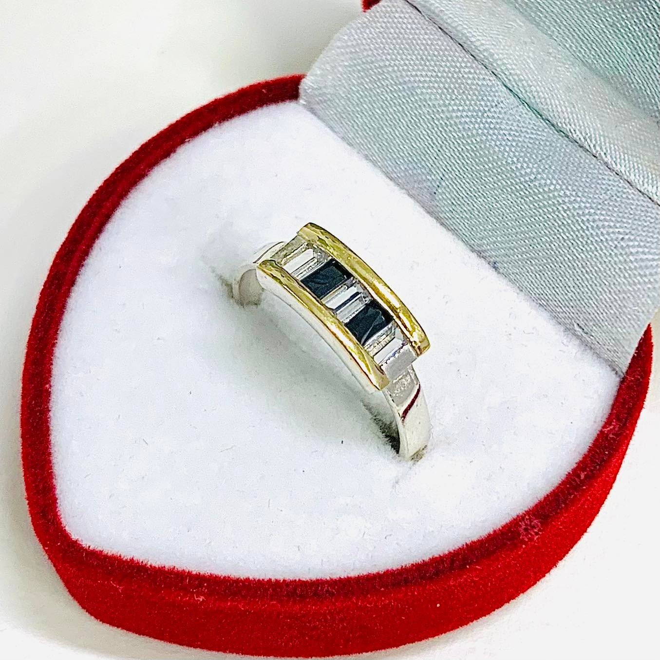 Anillo Smile Medio sin fin con Baguette negro de Plata y Oro