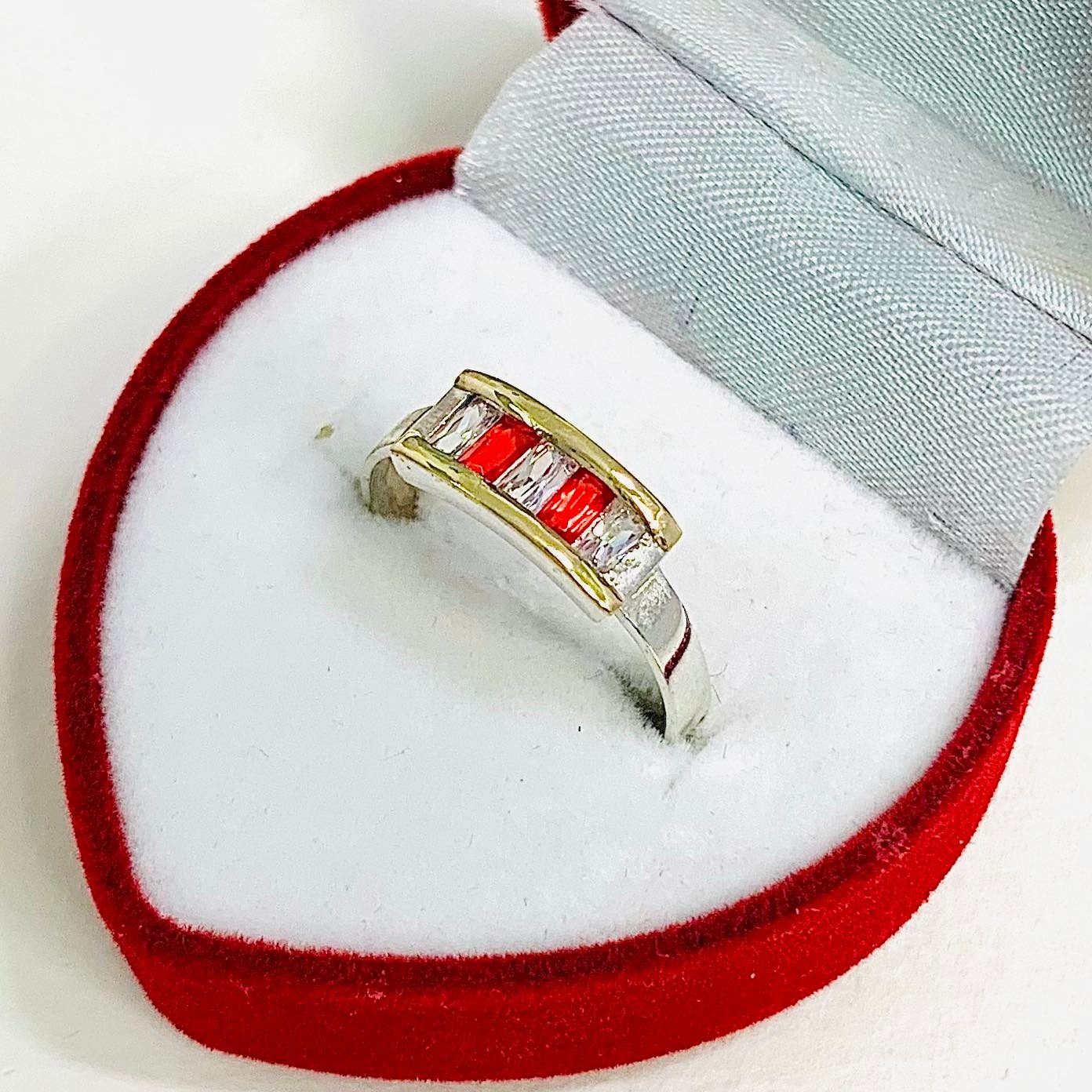 Anillo Smile Medio sin fin con Baguette rubi de Plata y Oro