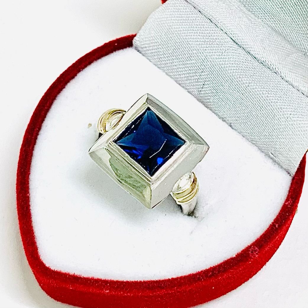 Anillo Clasic Cuadrado zafiro de Plata y Oro