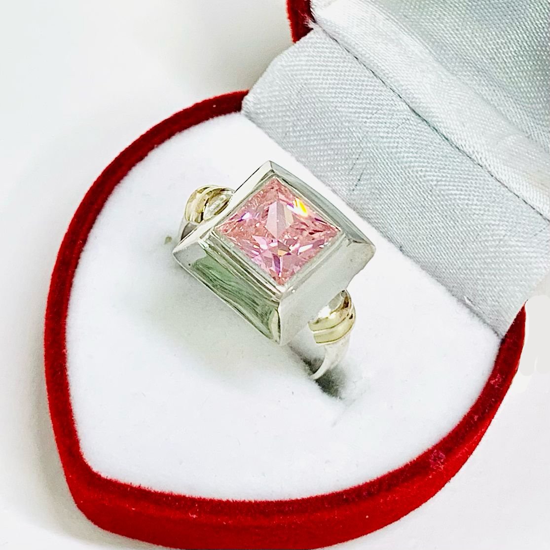 Anillo Clasic Cuadrado rosa de Plata y Oro