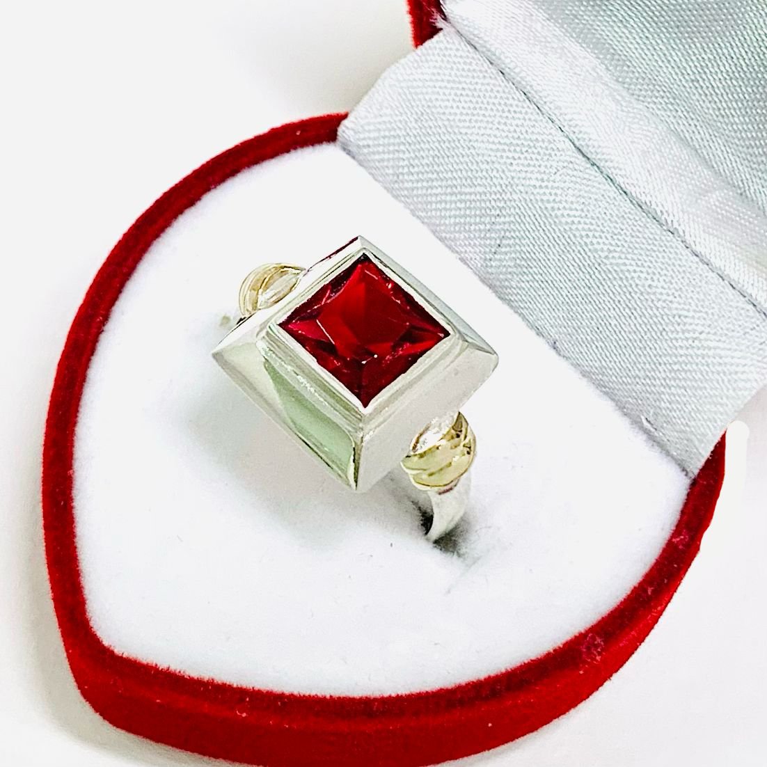 Anillo Clasic Cuadrado rubi de Plata y Oro