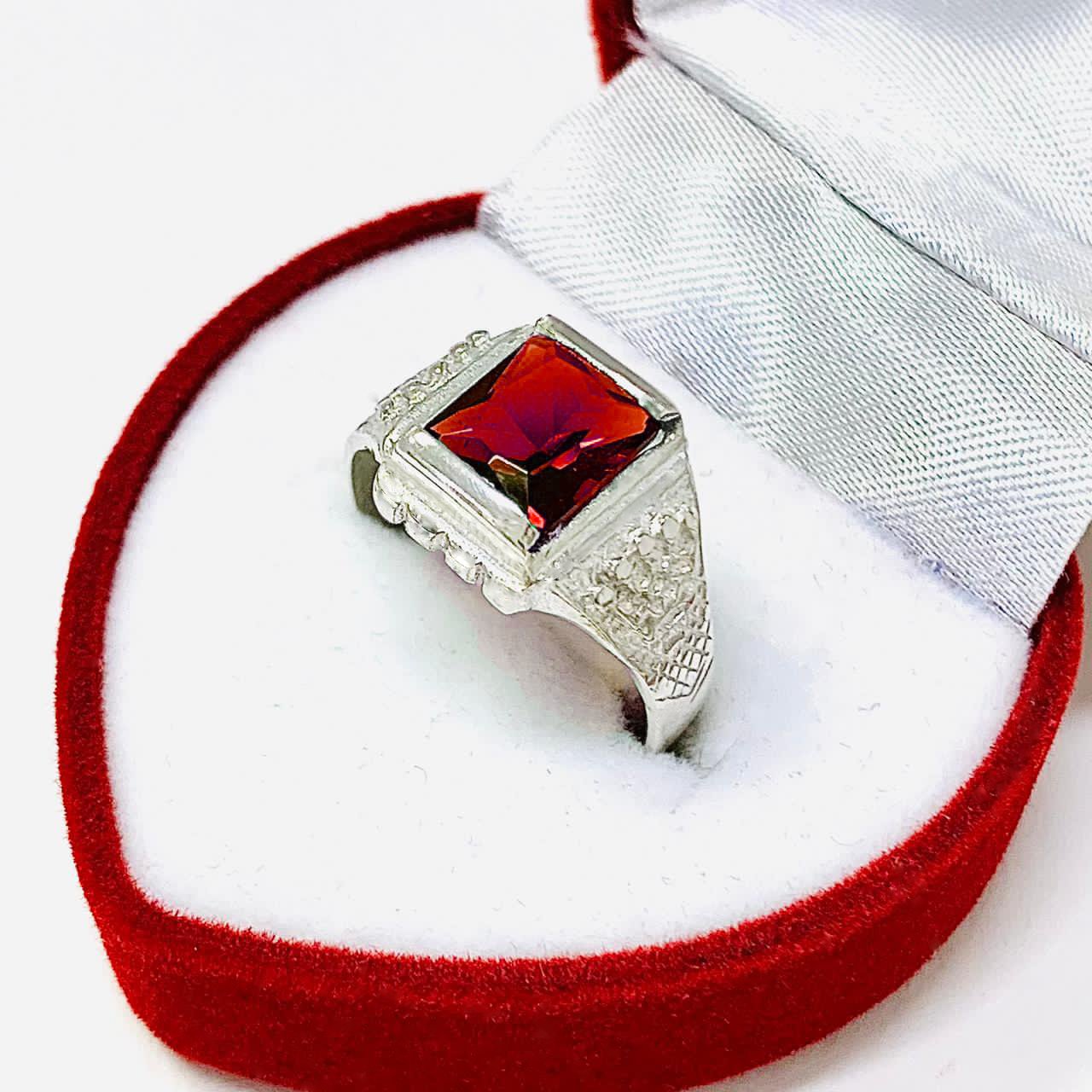 Anillo chico para Hombre con Corona piedra rubi Plata 925
