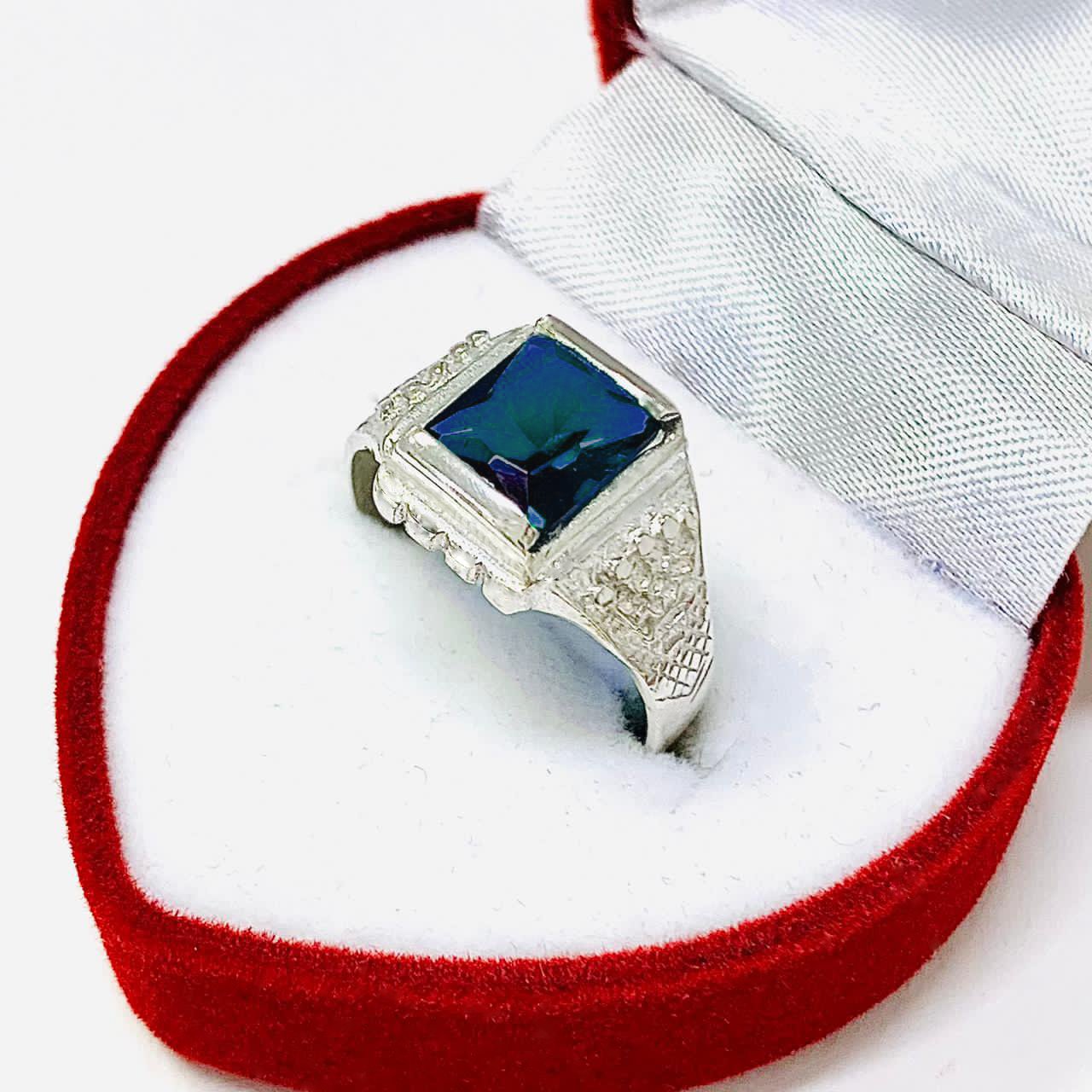 Anillo chico para Hombre con Corona piedra zafiro Plata 925