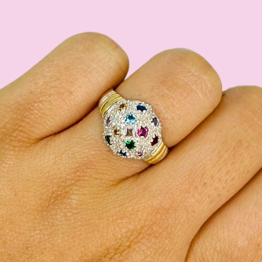 Anillo Frutillon centro rombo multicolor Plata y Oro