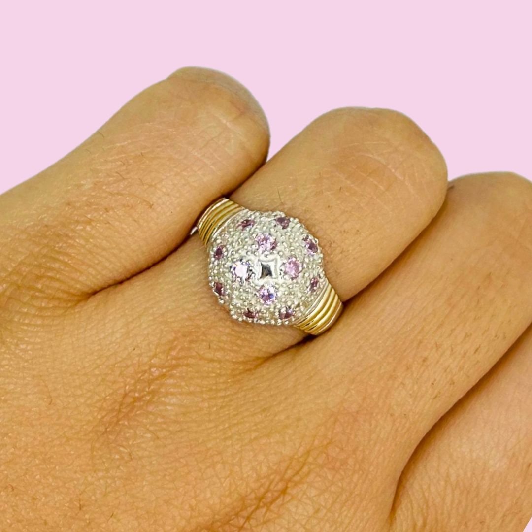 Anillo Frutillon centro rombo rosa Plata y Oro