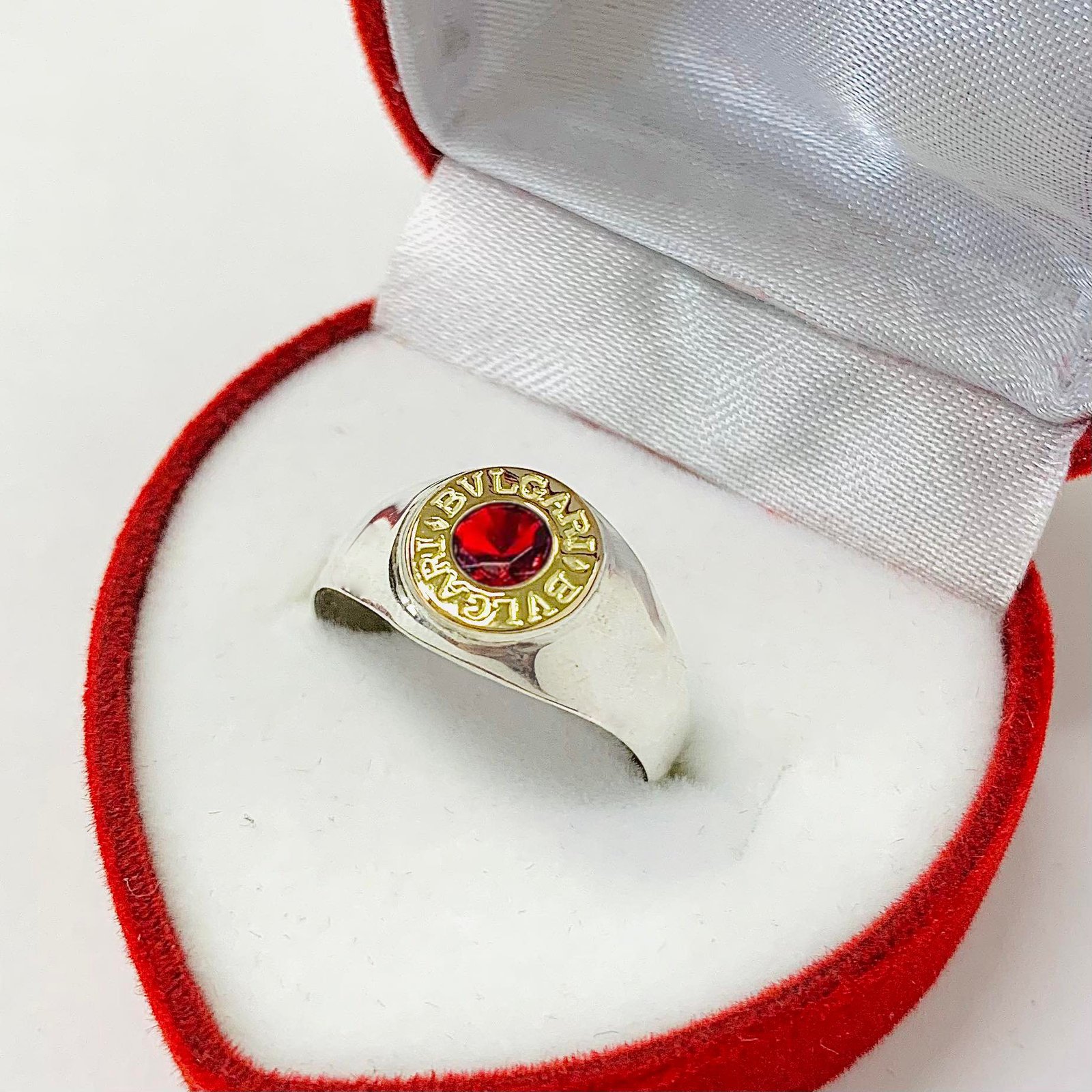 Anillo sello chico BVL rubi de Plata y Oro
