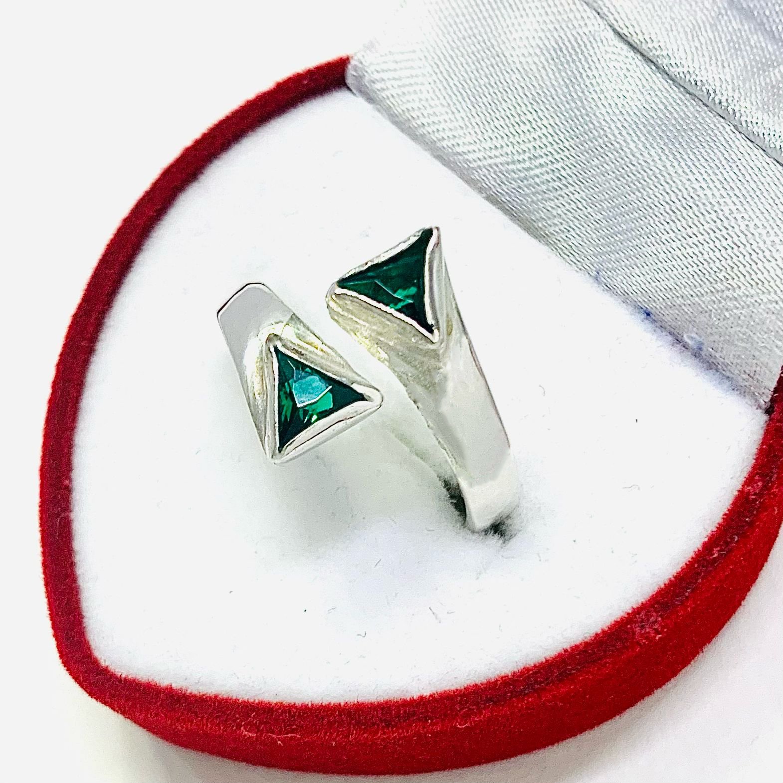 Anillo regulable doble triangulos esmeralda de Plata 925