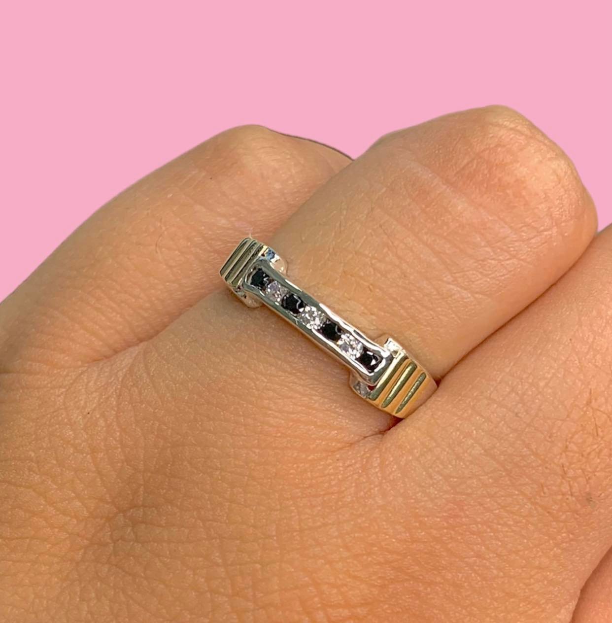 Anillo Medio Sin Fin con cubic blanco-negro Plata y Oro