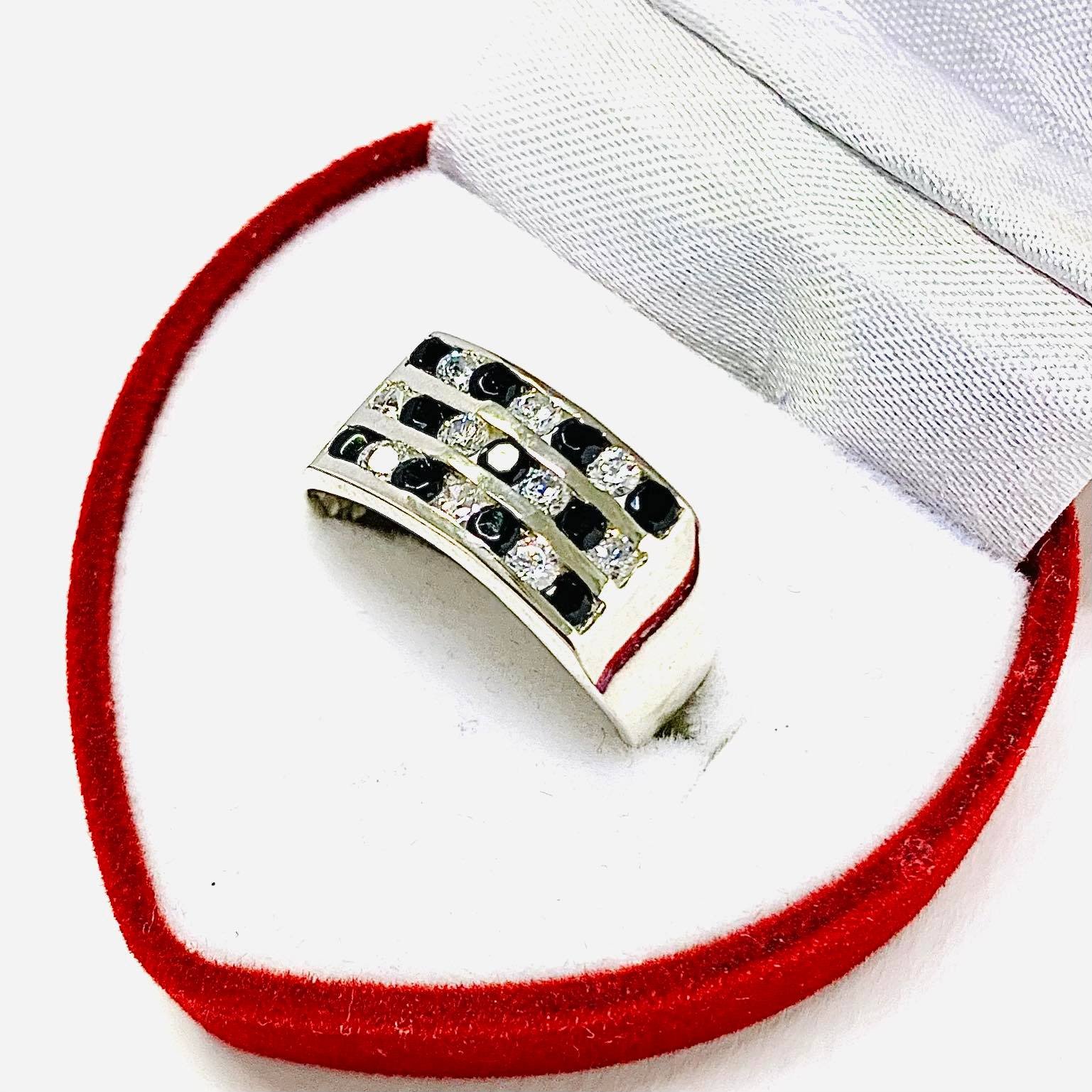 Anillo triple sin fin Blanco con negro de Plata 925