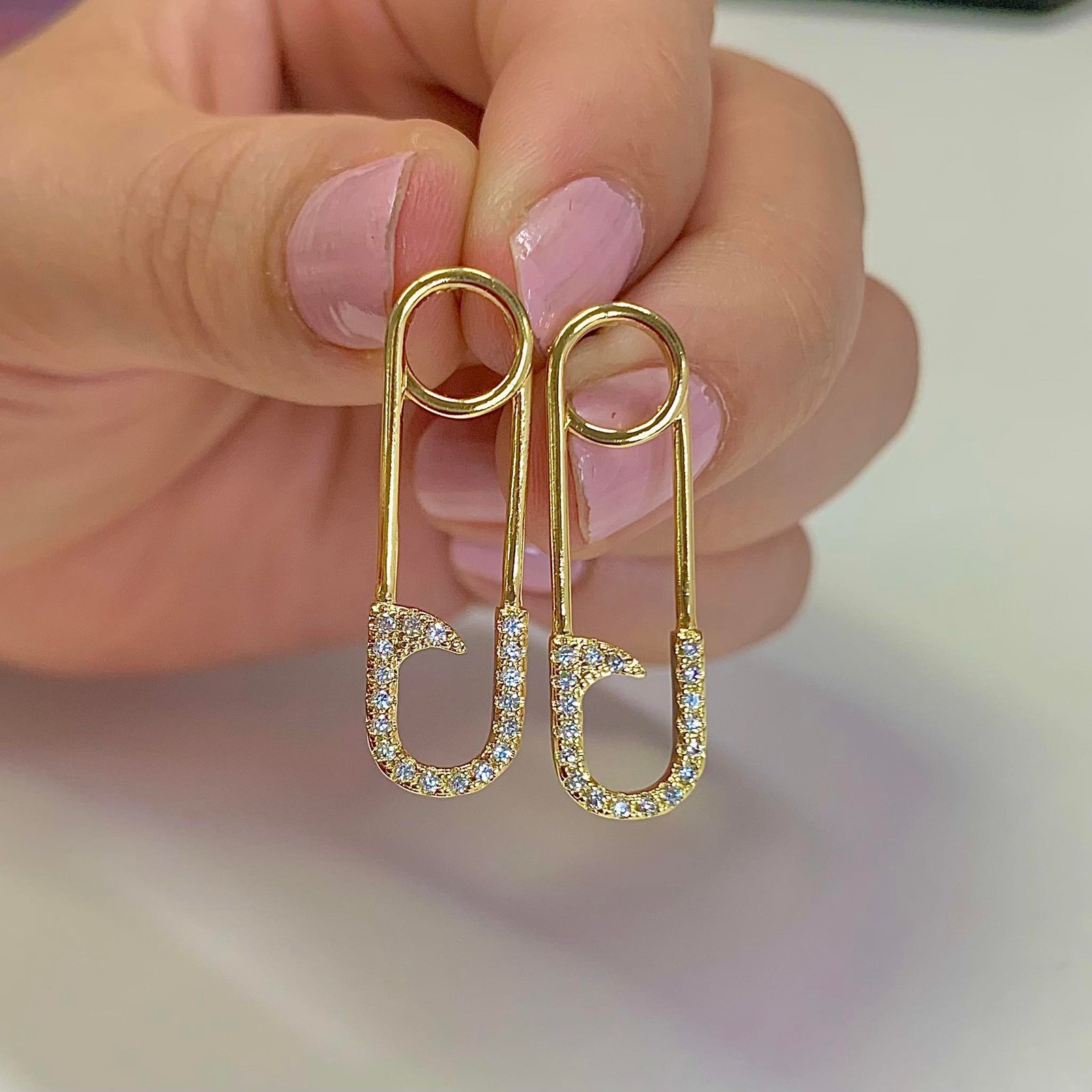 Aros alfiler de Gancho con micropave baño de oro Dorado