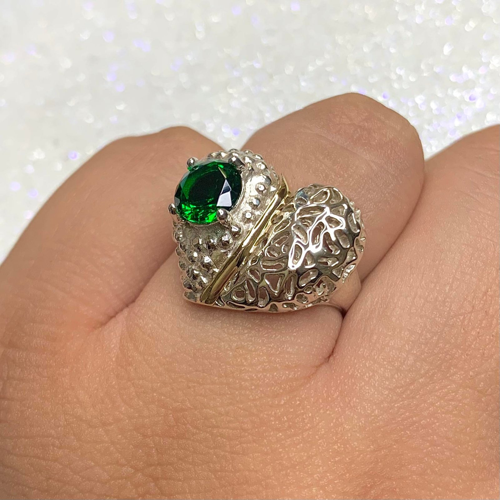 » Anillo Corazon con cubic Esmeralda de Plata y Oro