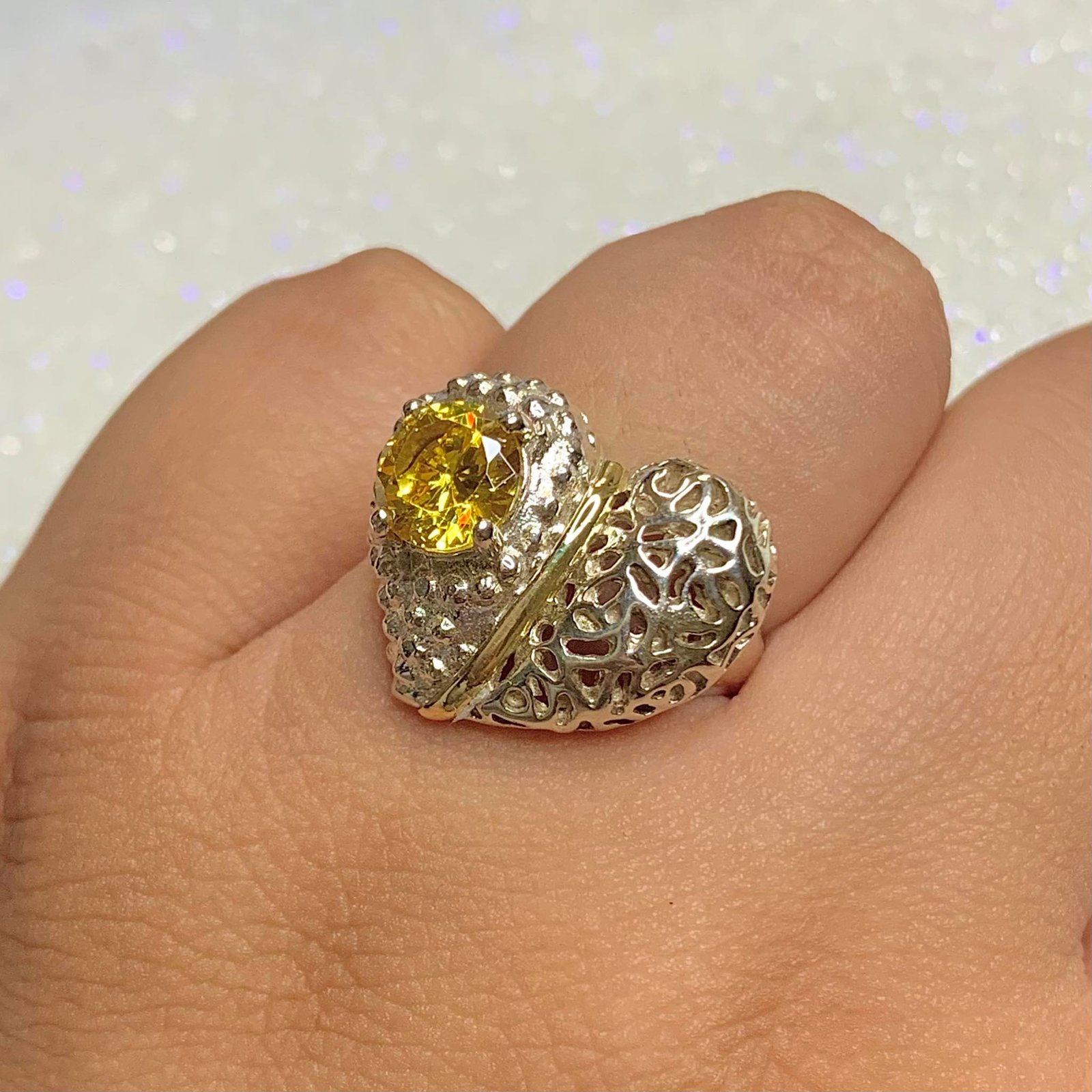 Anillo Corazon con cubic AMARILLO de Plata y Oro