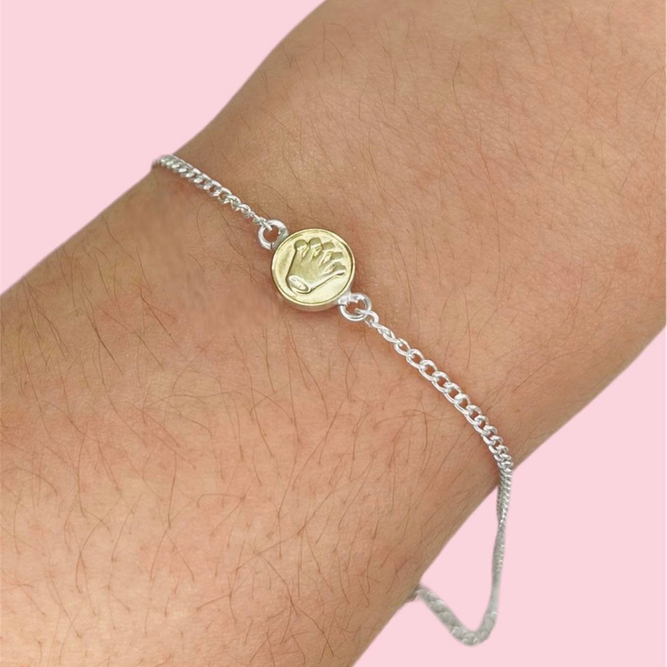 Pulsera Groumet con dije corona rolex de Plata y Oro