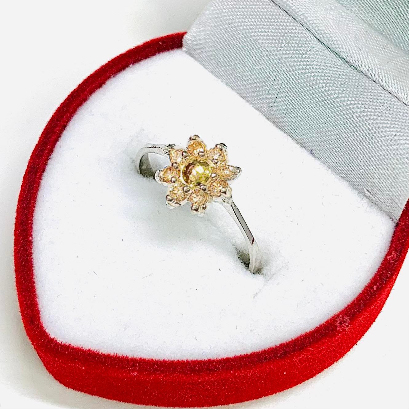 Anillo Roseta flor ambar de Plata y Oro