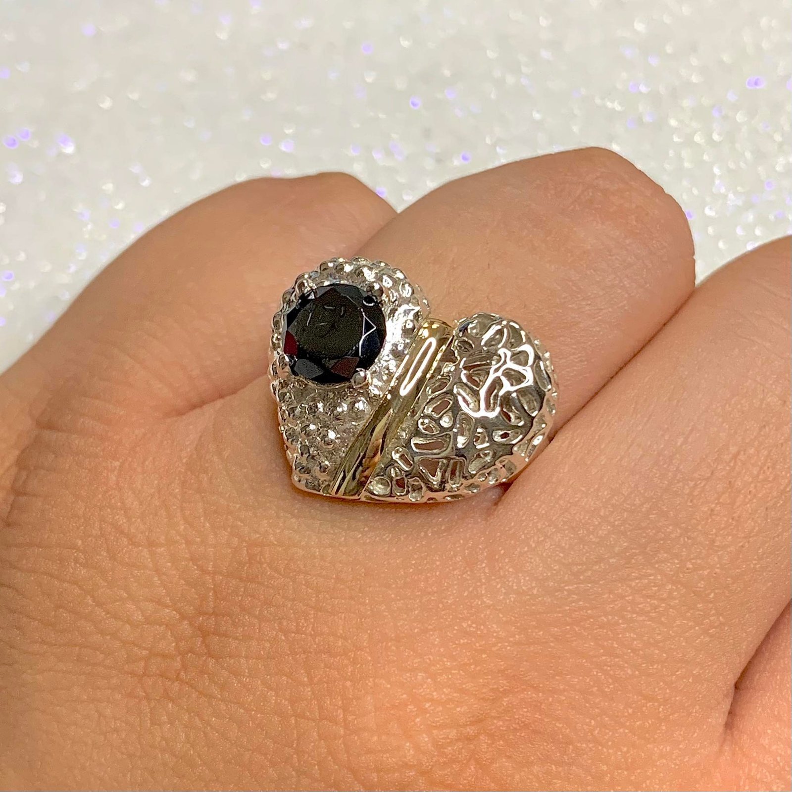 Anillo Corazon con cubic NEGRO de Plata y Oro