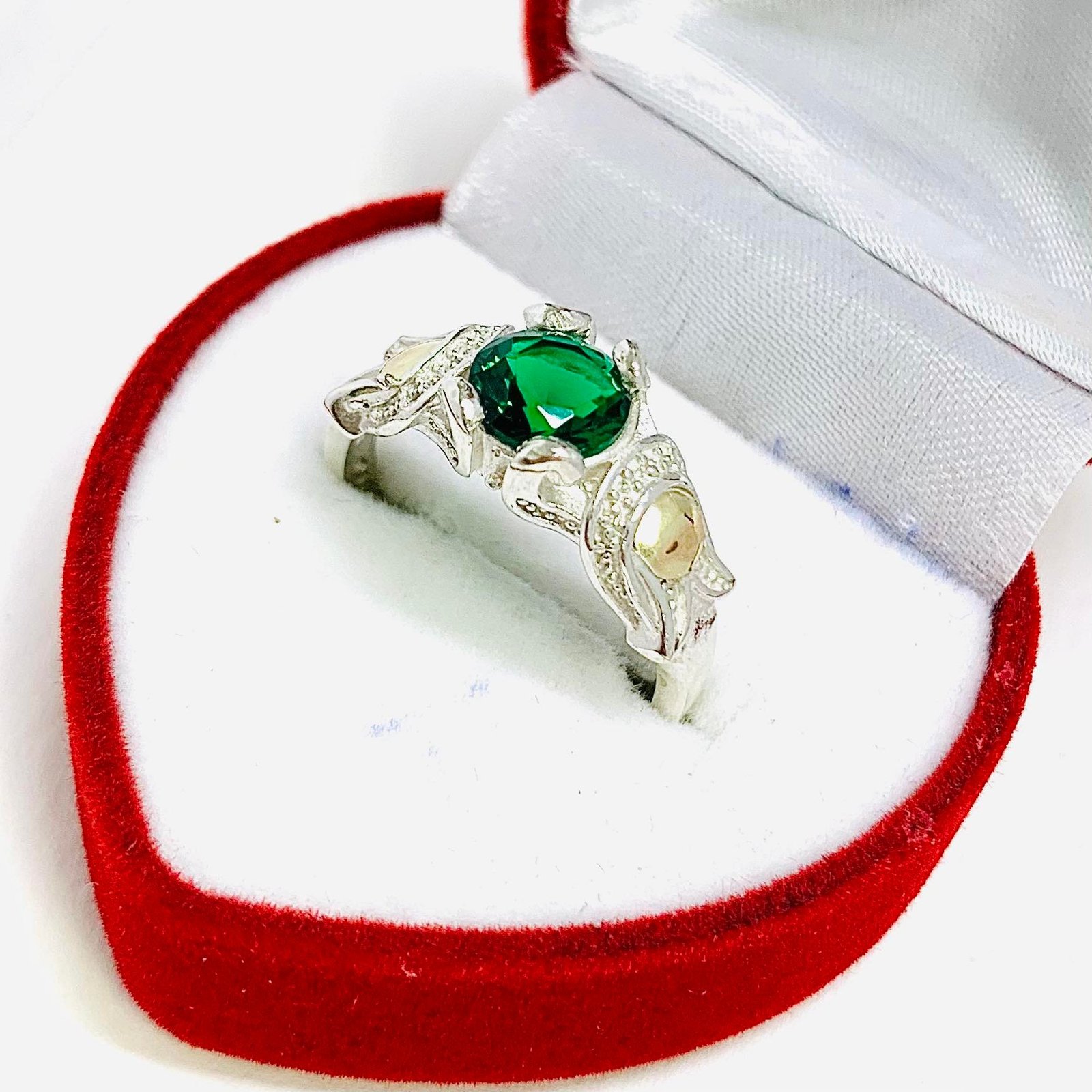 Anillo Tulipan con piedra esmeralda de Plata y Oro