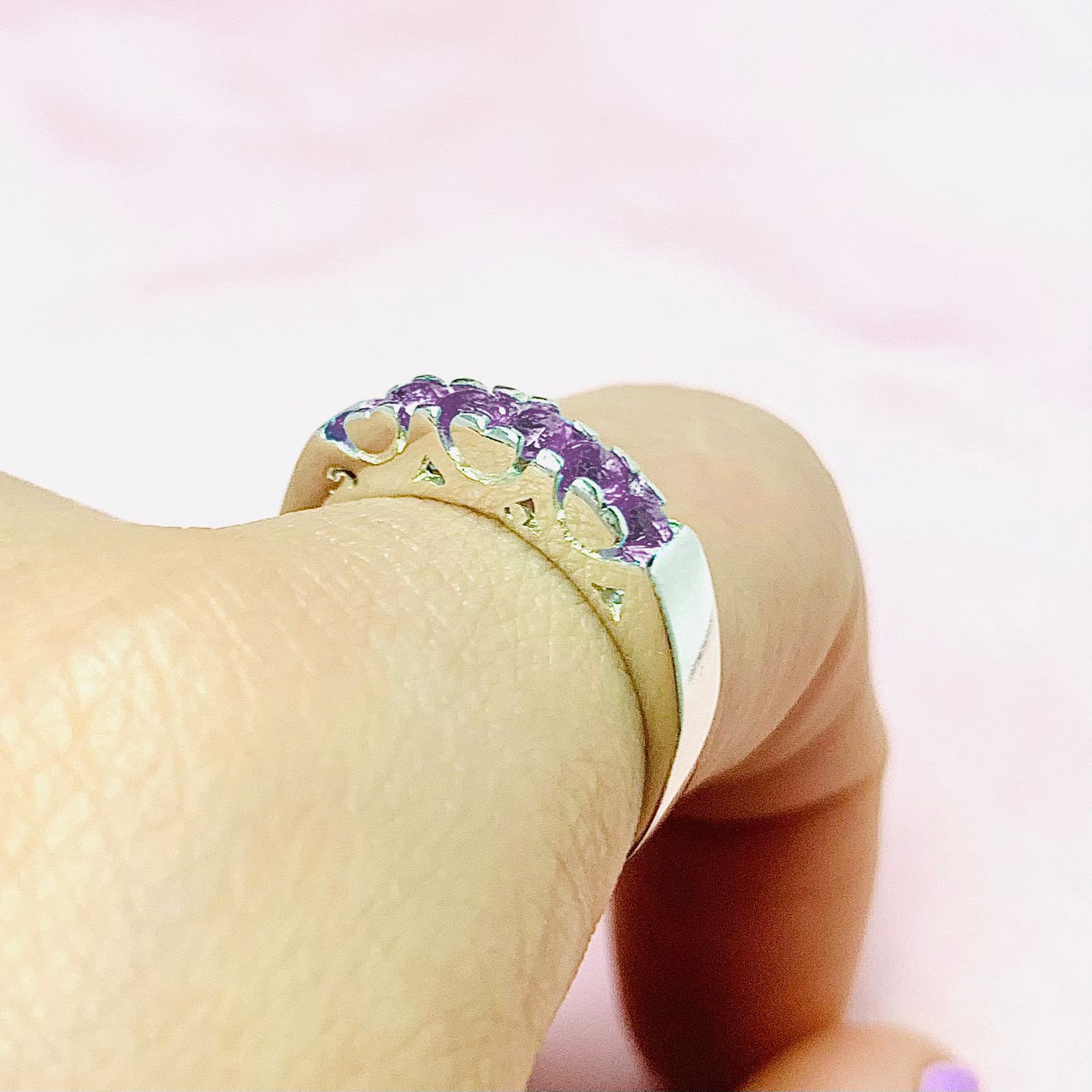 Anillo sinfin con corazones con piedra amatista Plata 925
