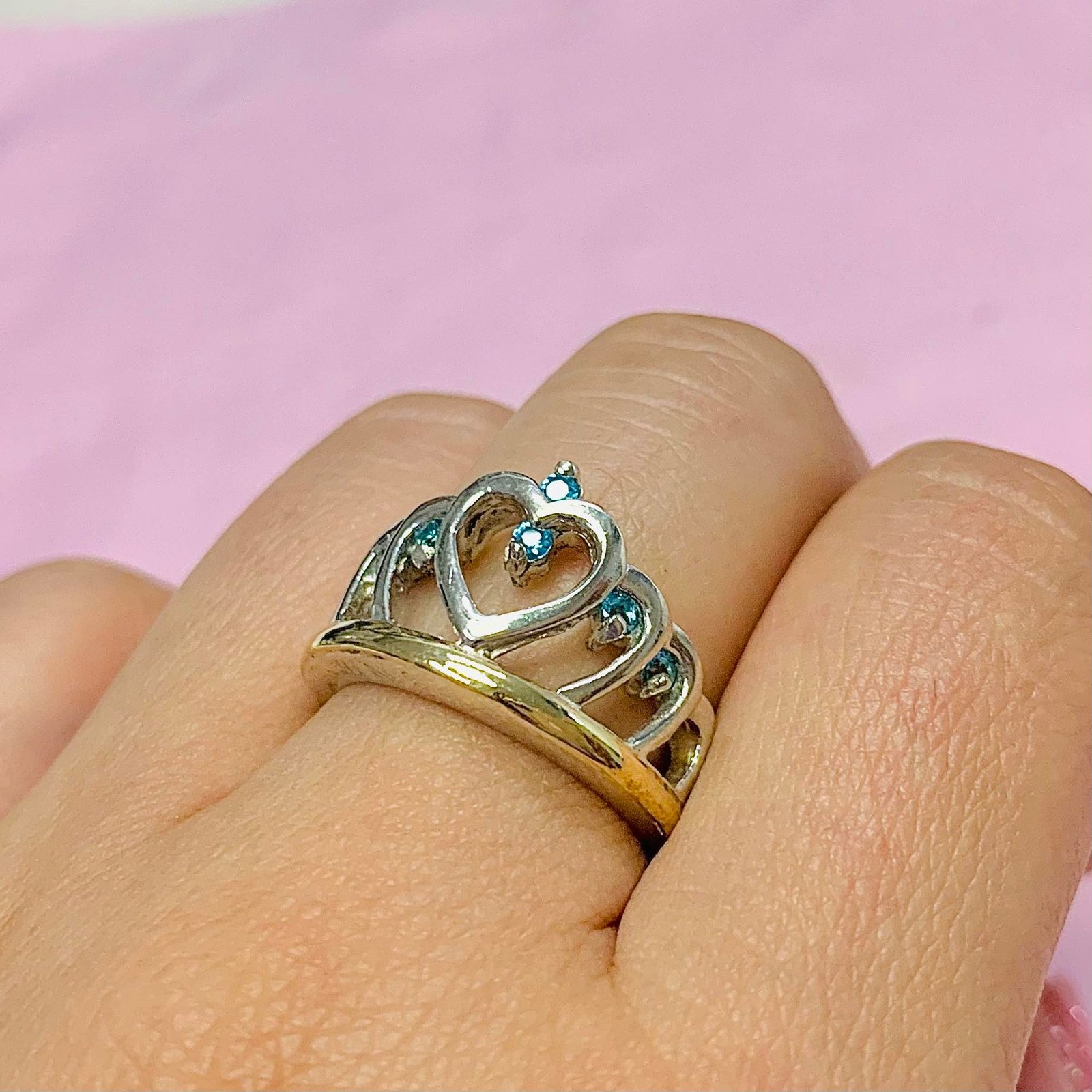 Artículo: AP 114-1Anillo corona Corazon calado con cubic Agua marina