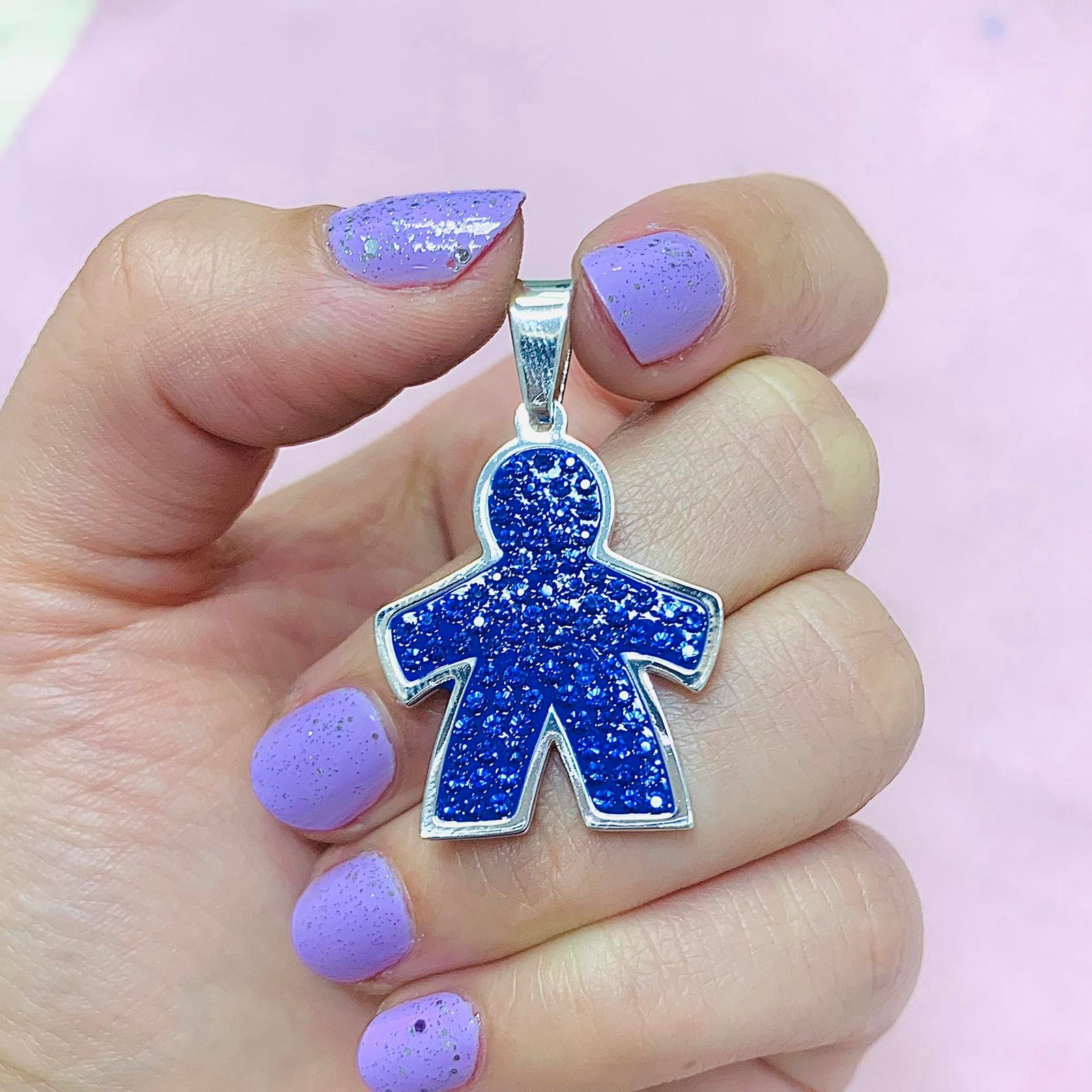 Dije Muñeco con Piedras azules de Acero Blanco