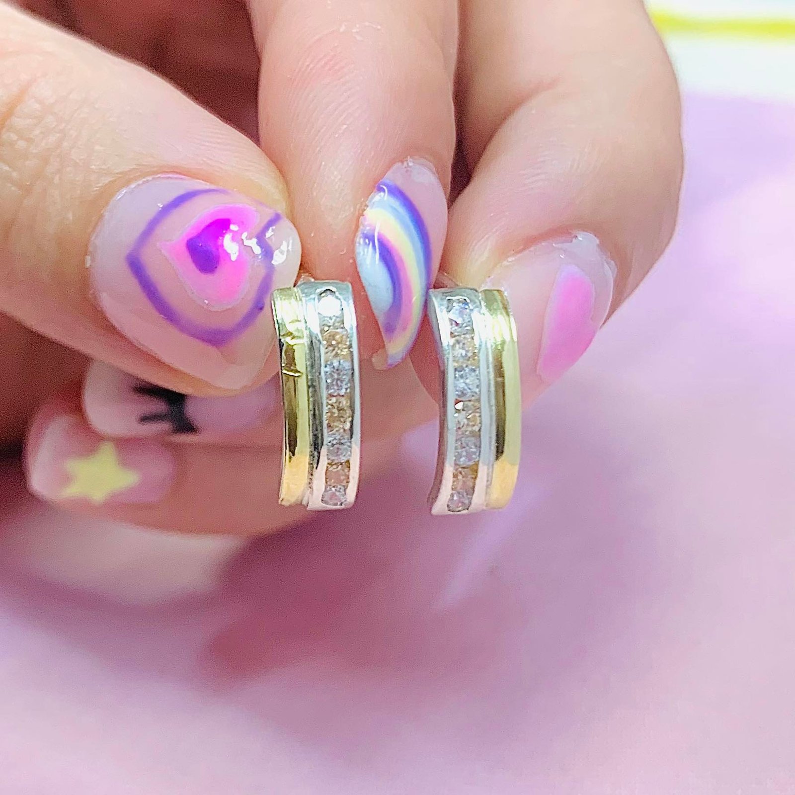 Aros Media Caña Sin Fin Blanco-ambar Plata y Oro