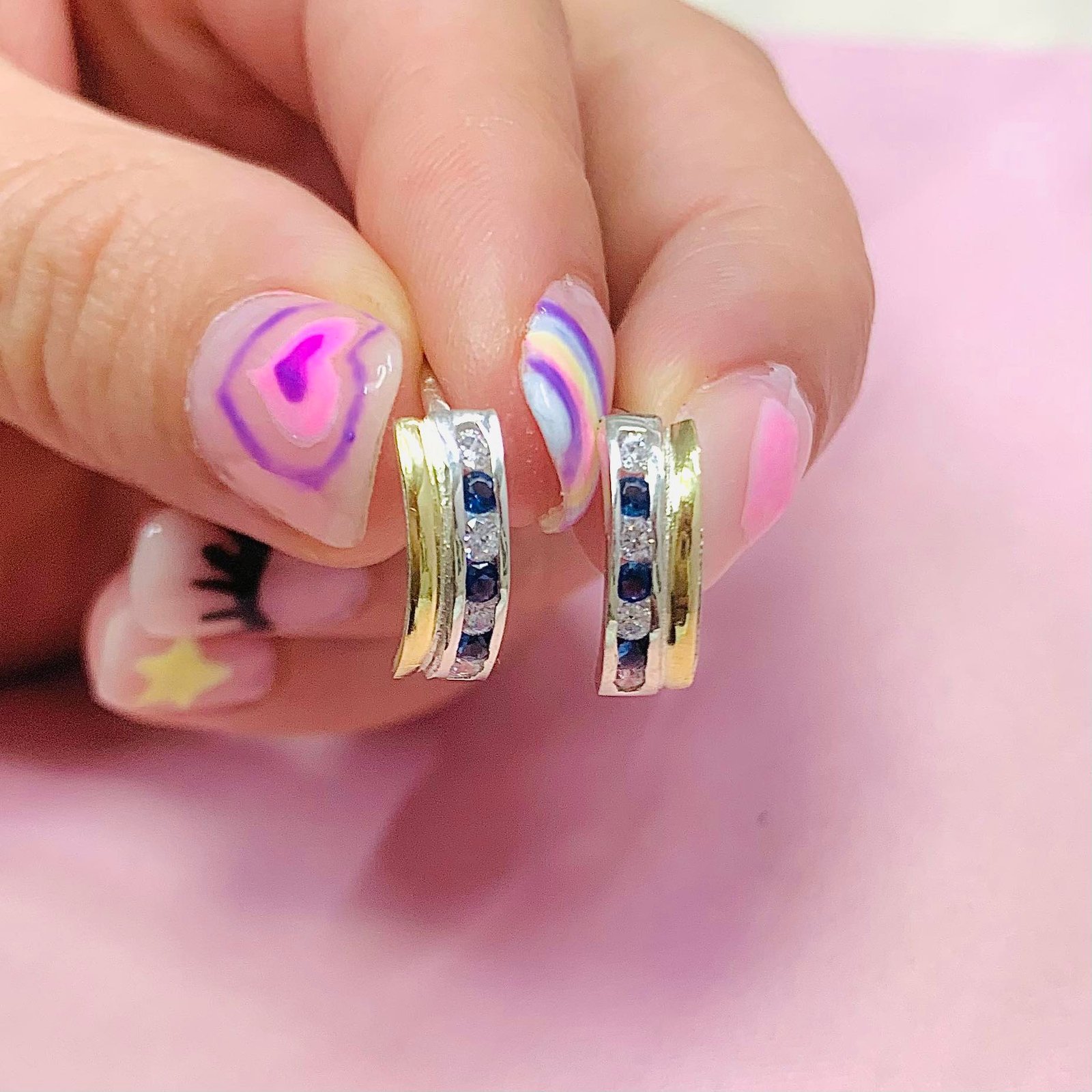 Aros Media Caña Sin Fin Blanco-zafiro Plata y Oro