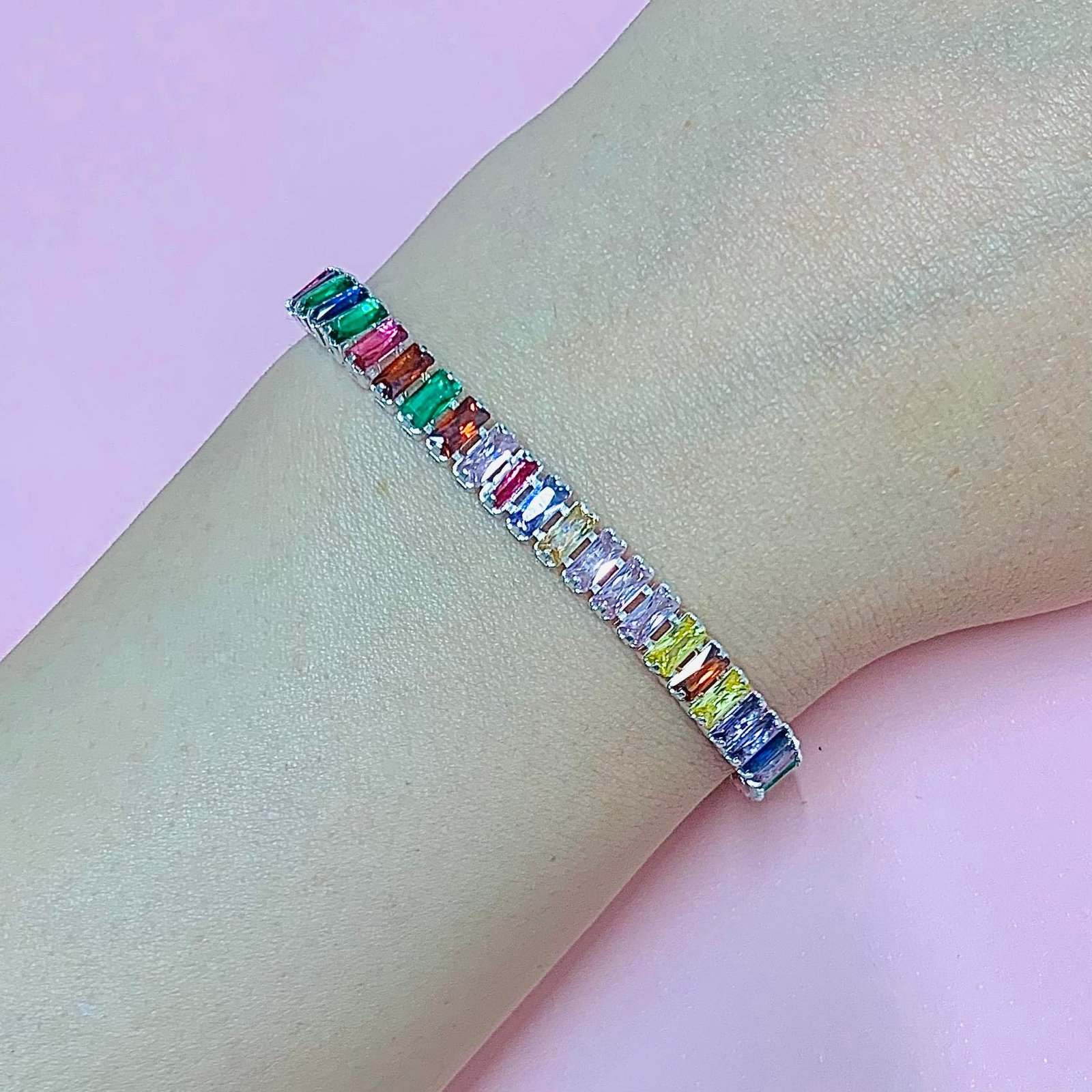 Pulsera lujosa con piedras Baguette multicolor de plata 925