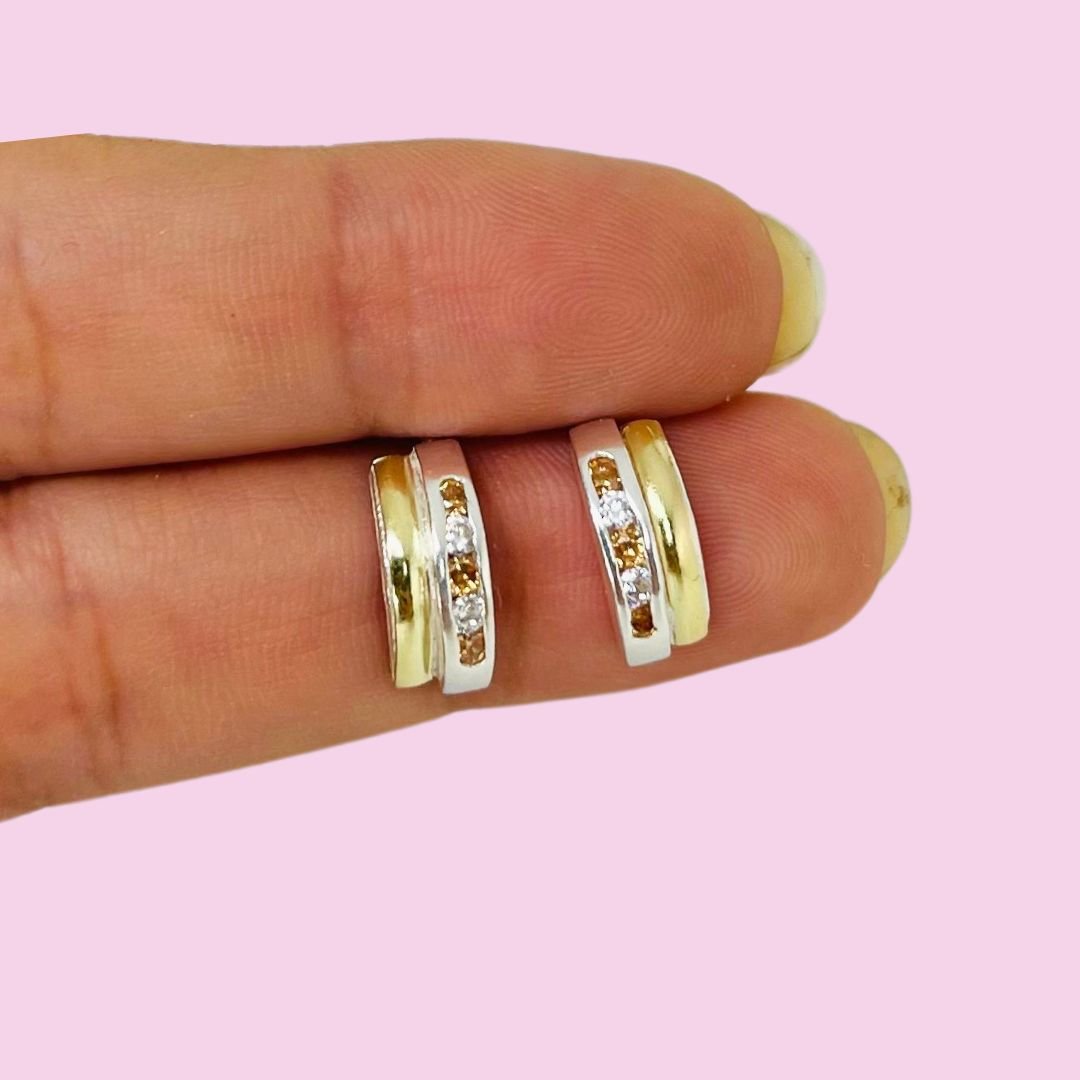 Aros Media Caña Sin Fin Blanco-ambar Plata y Oro