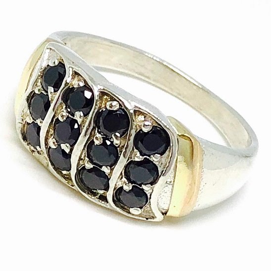 Anillo Danisa cintas con cubic negro Plata y Oro
