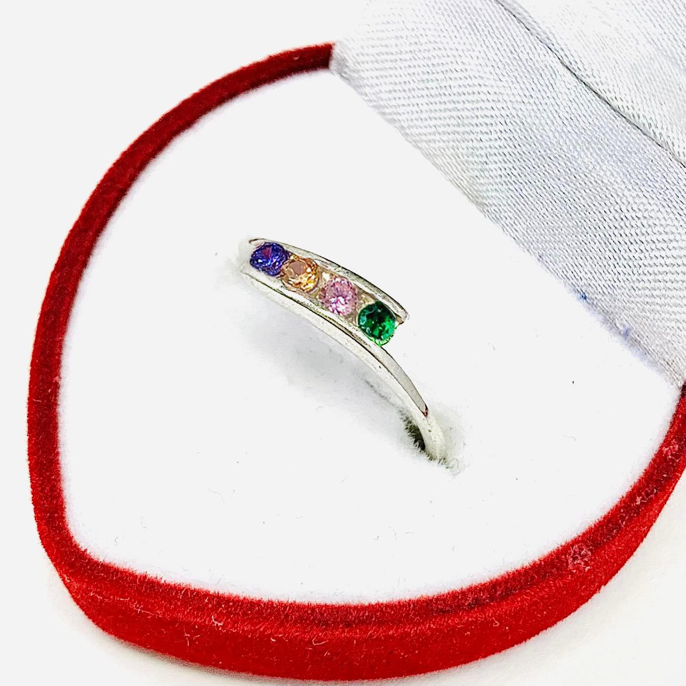 Anillo Cruzado con Piedras multicolor de Plata 925