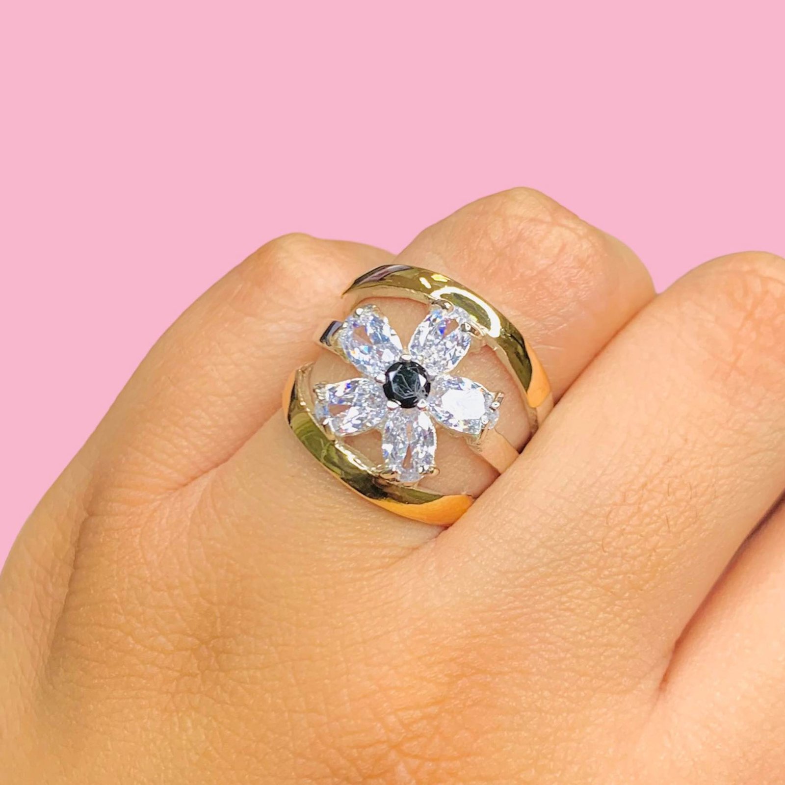 Anillo flor con cubic combinado de Plata y Oro