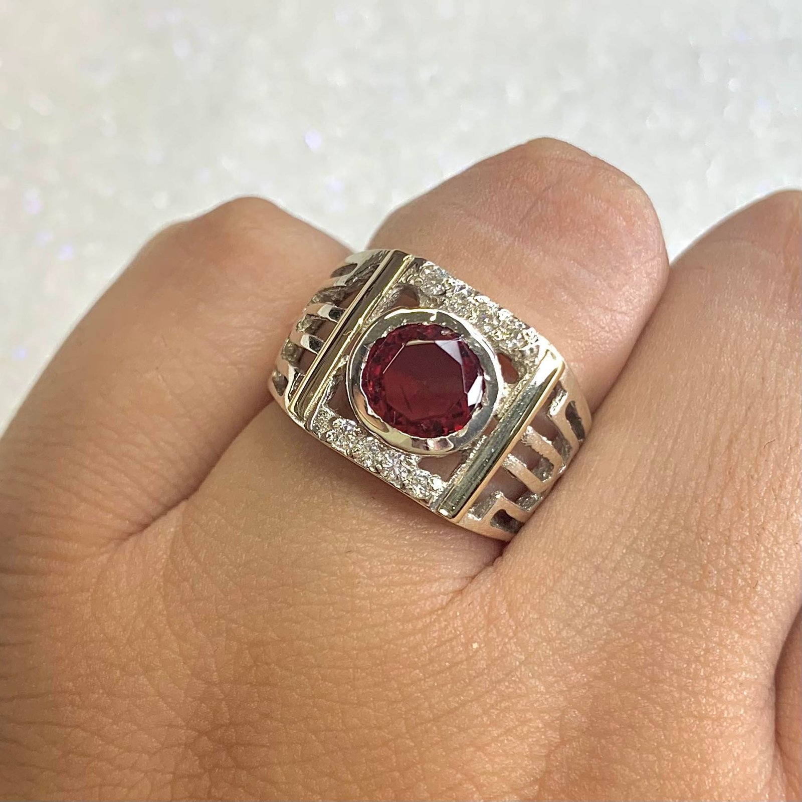 » Anillo hombre calado con cubic rubi de Plata y Oro