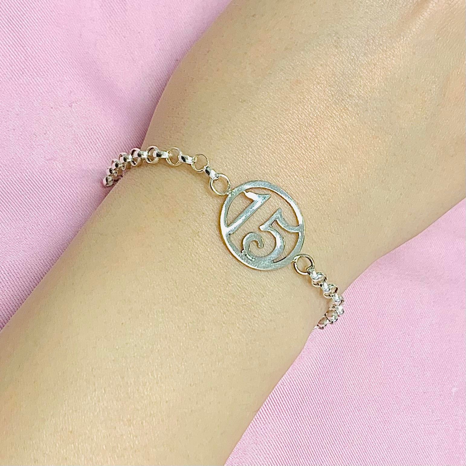 Pulsera rolo con dije quinceaños de plata 925