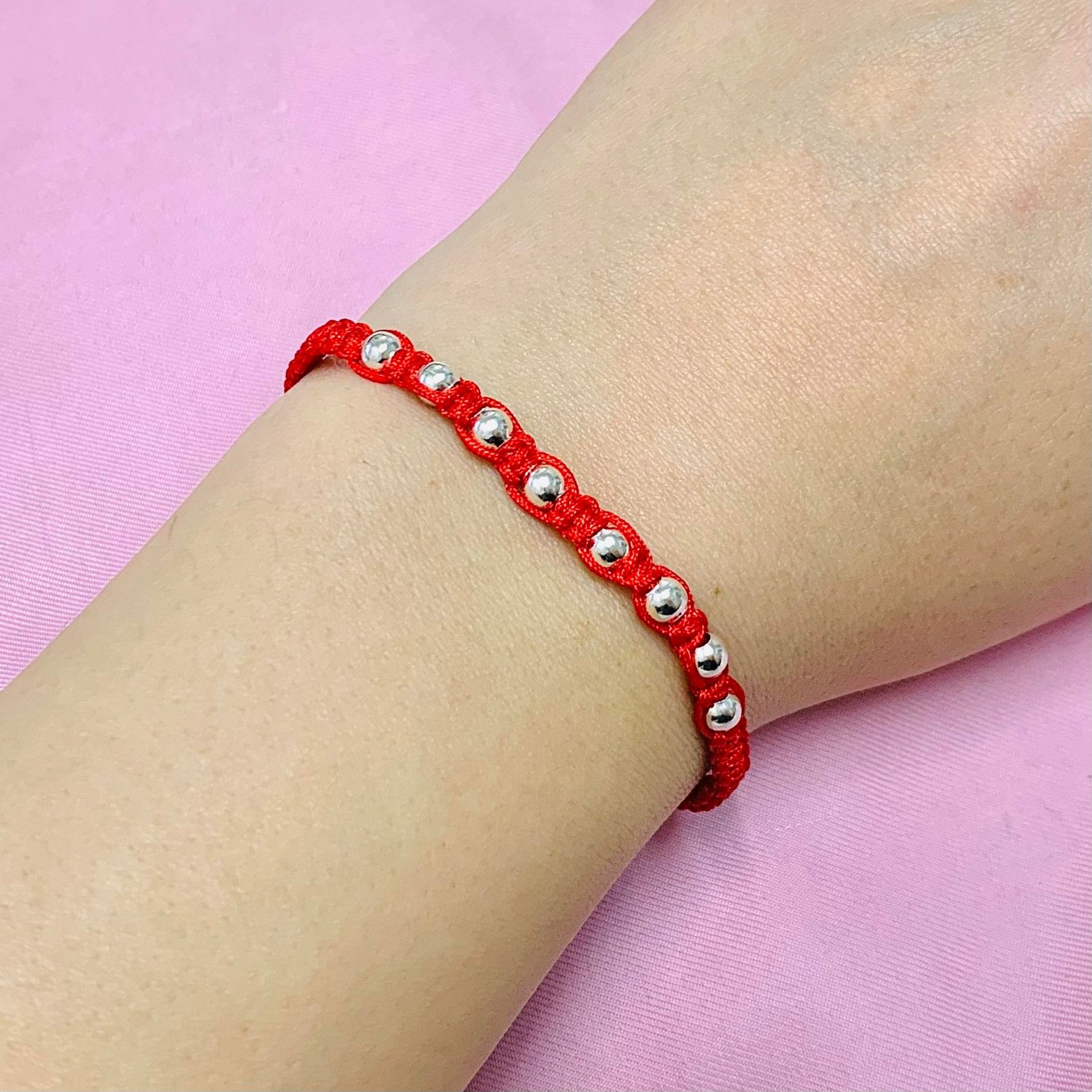 Material: Hilo Rojo, Bolitas enchapado plateado