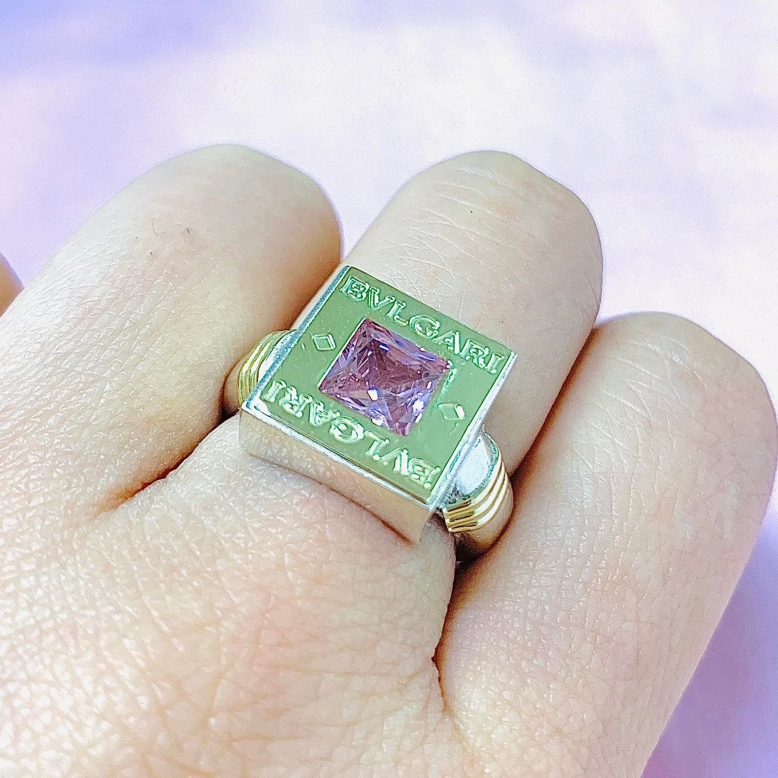 ANILLO BVLG cuadrado Grande Rosa de Plata y oro